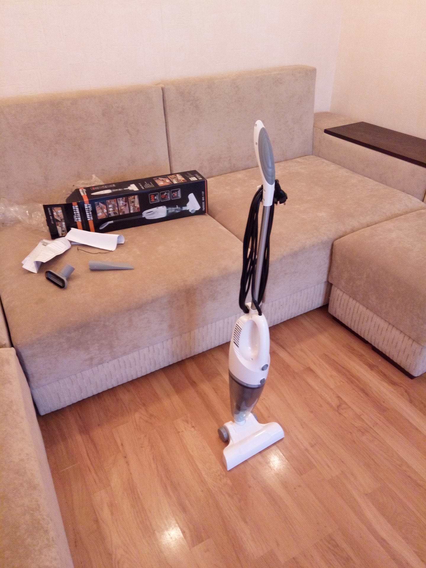 Я доволен покупкой. 1. Соответствие цены и качества. 2. Доставили из центр склада (Киев) в Харьков (в магазин где оплатил товар) за 1 день. 3.Дали рассрочку. 4.за 10 грн !!! оформили гарантию магазина на 2 года!!. Собрал,включил,работает. Провод намотал на предусмотренные крючки на ручке и он стал устойчивым, теперь стоит как дневальный. Кстати, если хотите им попылесосить под кроватью, он поворачивается на суставе основной щетки и красиво заезжает под кровать.