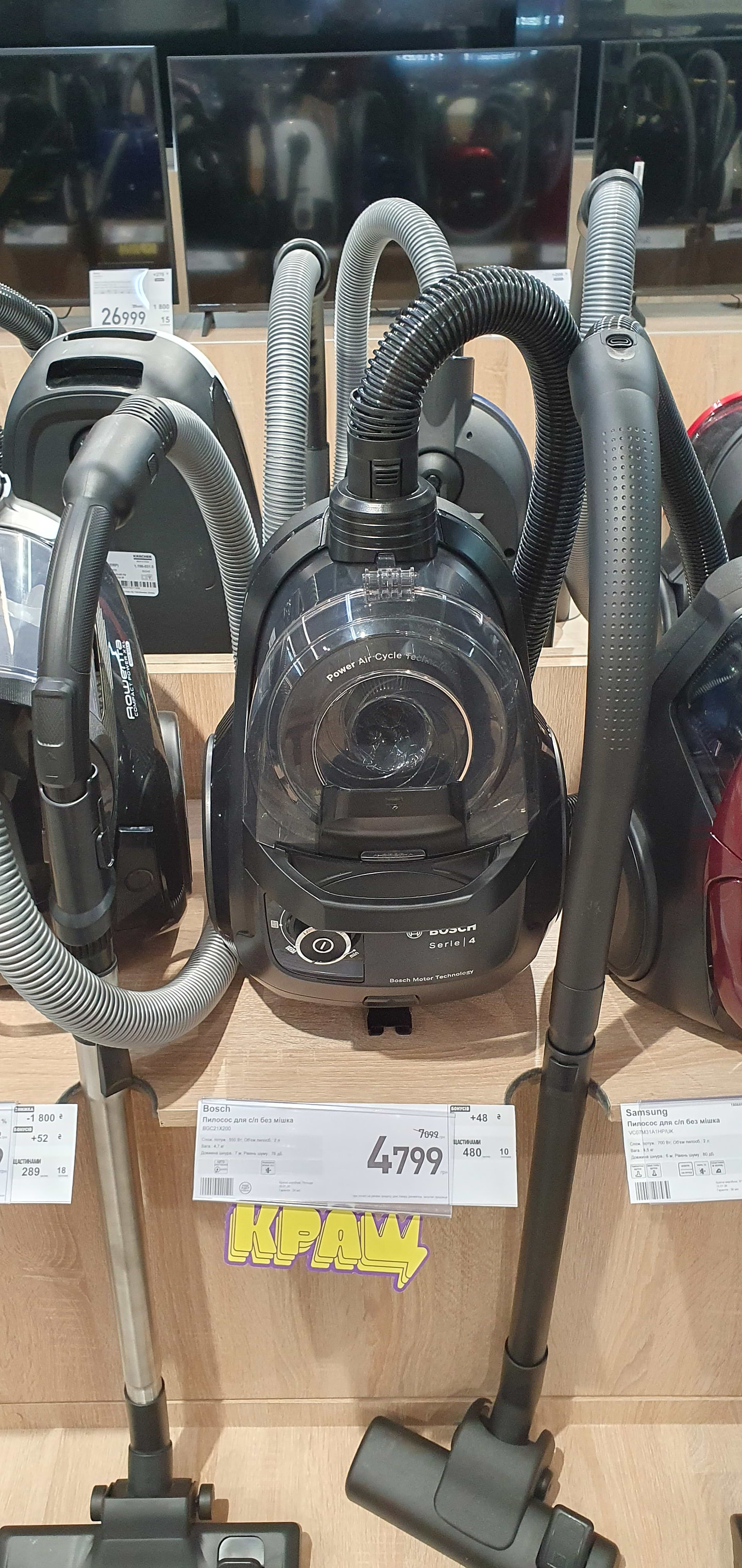 Не поганий пилосос за свої гроші, легко чистити, тягне непогано, потужність регулюється, довгий шнур, зробила ще додаткову безкоштовну гарантію на мотор на 10 років від Bosh на сайті