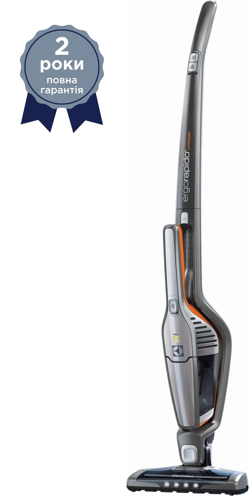 Убрать быстро и эффективно всю пыль в доме вам поможет вертикальный пылесос Electrolux ERGO13. Эта модель создана для того, чтобы вы всегда смогли быстро приступить к уборке. Например, пылесос будет идеальным вариантом для семьи, где есть маленький ребенок. Вы сможете быстро достать ручной пылесос и убрать крошки хлеба или печенья. Также ручной пылесос удобен для очистки мебели или для уборки в автомобиле. Время работы вертикального пылесоса Electrolux ERGO13 составляет 35 минут. За это время вы сможете убрать довольно большую площадь помещения с идеальным результатом. На щетке пылесоса предусмотрена светодиодная подсветка для удобства уборки в труднодоступных местах, а также эта подсветка придаст футуристический вид пылесосу. С пылесосом Electrolux ERGO13 у вас в доме всегда будет чистота и порядок.