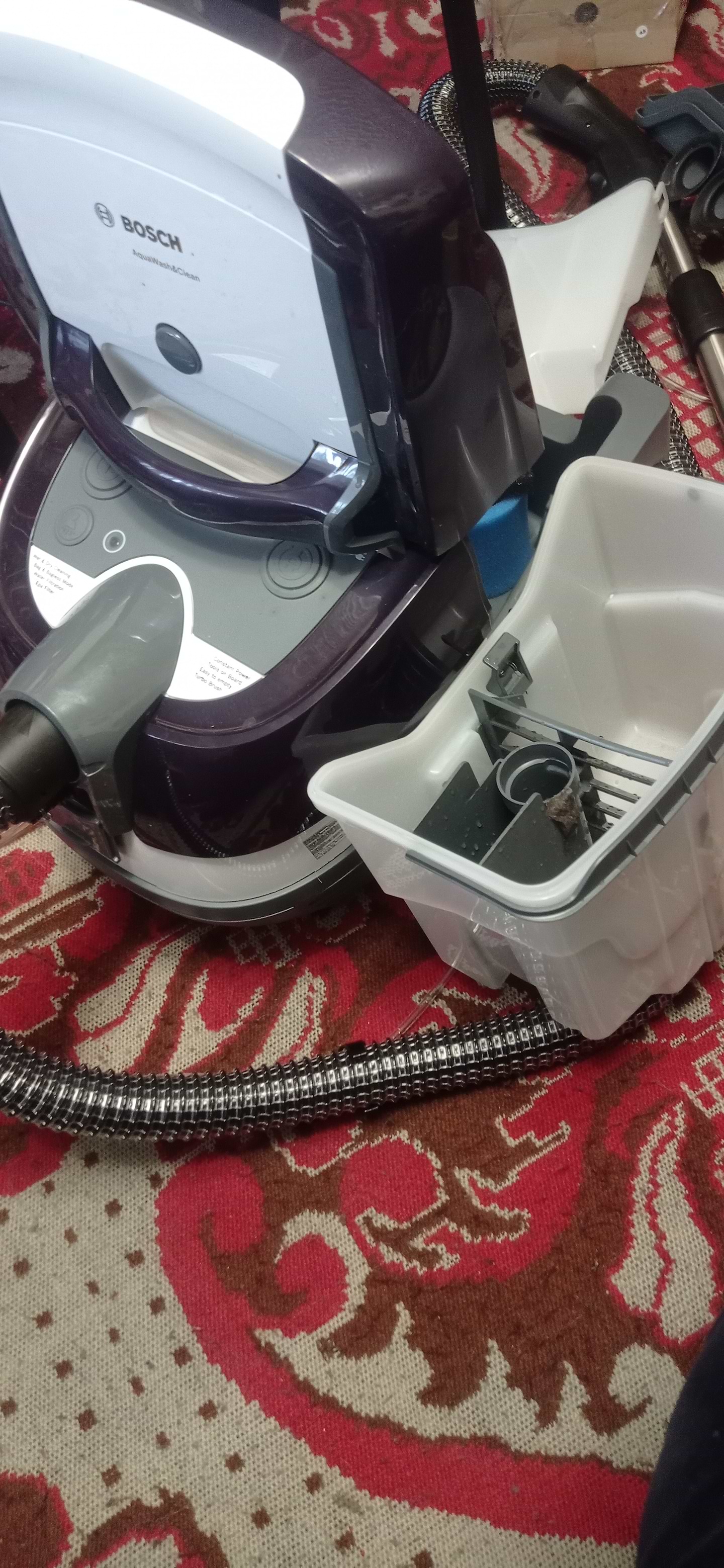 Товар вартує своїх грошей. Вдома маю собаку дуже шерстяну і волохату. Тому й купив, бо цей Бош якісно видаляє з ковролінової поверхні шерсть, дрібне сміття. Оскільки вода фільтрує всі мікрочастинки, то після прибирання повітря тільки дещо зволожене, але без жодних запахів (як при сухому прибиранні). Порадувала місткість для води, яку легко мити, шерсть зручно вимивати з ребристих поверхонь. Мив підлогу з використанням мийної речовини, результат гарний. Вікна не пробував, бо не було потреби. Дещо громіздкий, але його результативність і зручність використання + велика купа насадок, що кріпляться і ховаються в корпусі. Гарний товар, рекомендую.