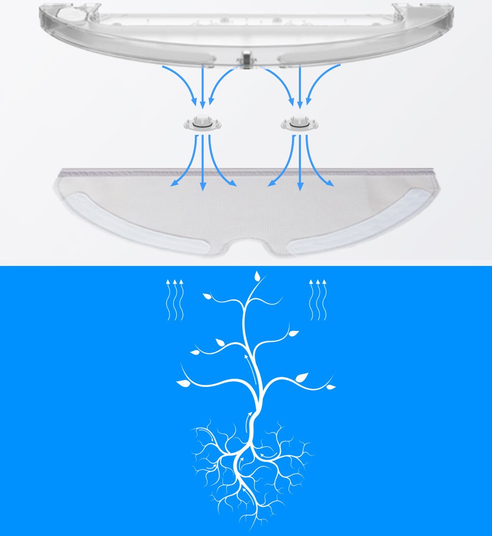 Подобно дереву, впитывающему влагу из почвы, степень увлажнения микрофибры пропорциональна ее расходу на вытираемые полы. Если листья не испаряют влагу, то дерево впитывает ее меньше из земли. Такие же процессы происходят в технологичном роботе-пылесосе Xiaomi Mi RoboRock Sweep One Vacuum.