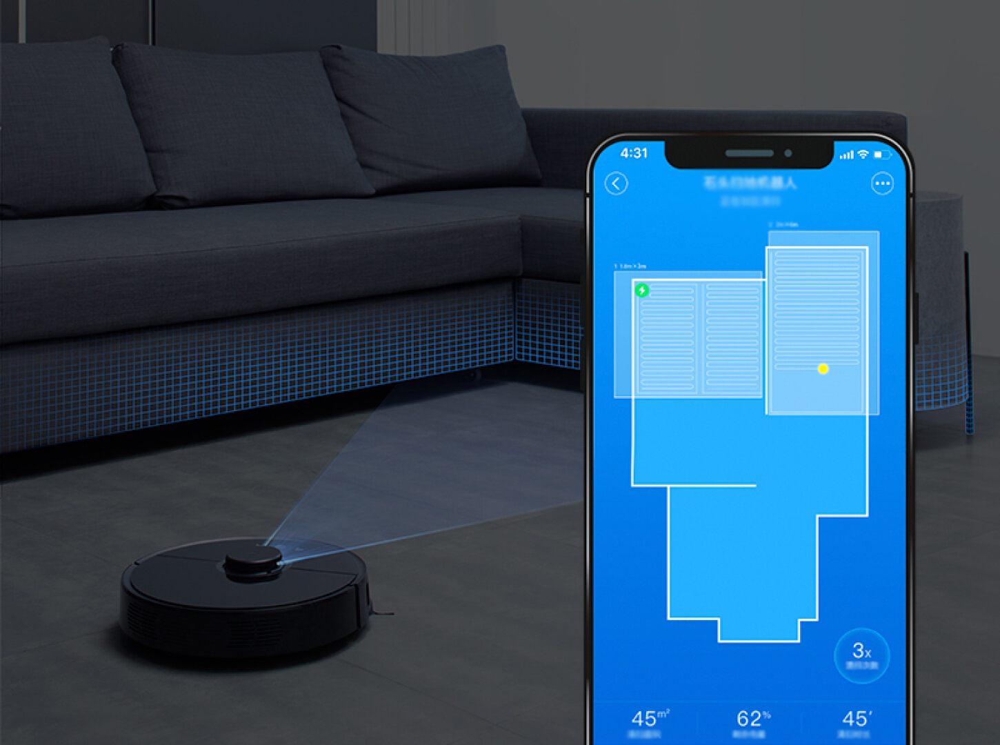 Указывайте необходимую зону уборки со смартфона