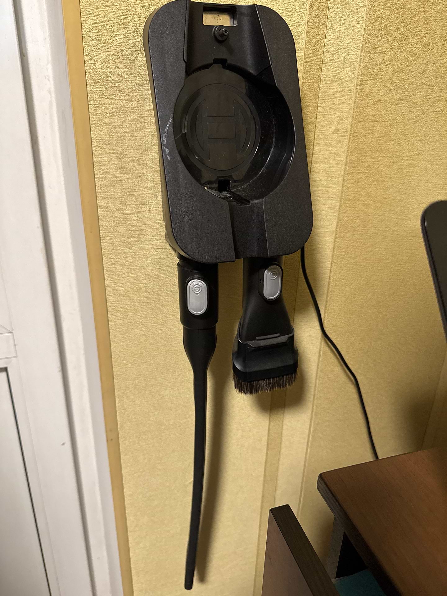Док-станция, которая крепится непосредственно на стену: минимум пространства для хранения пылесоса