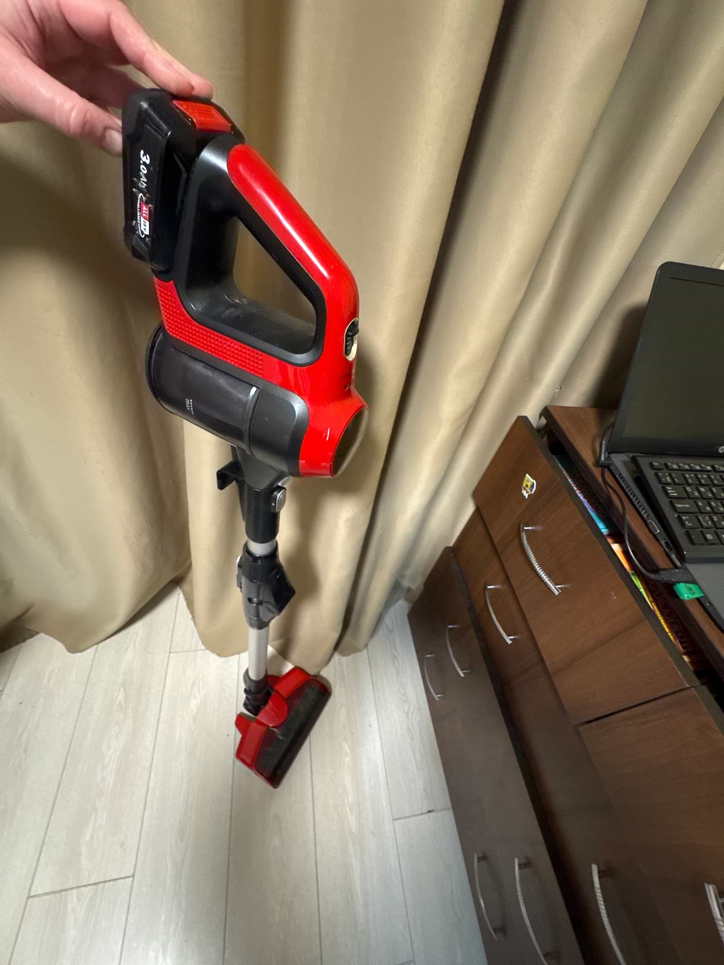 Убирает под низкой мебелью и сгибается на 90°