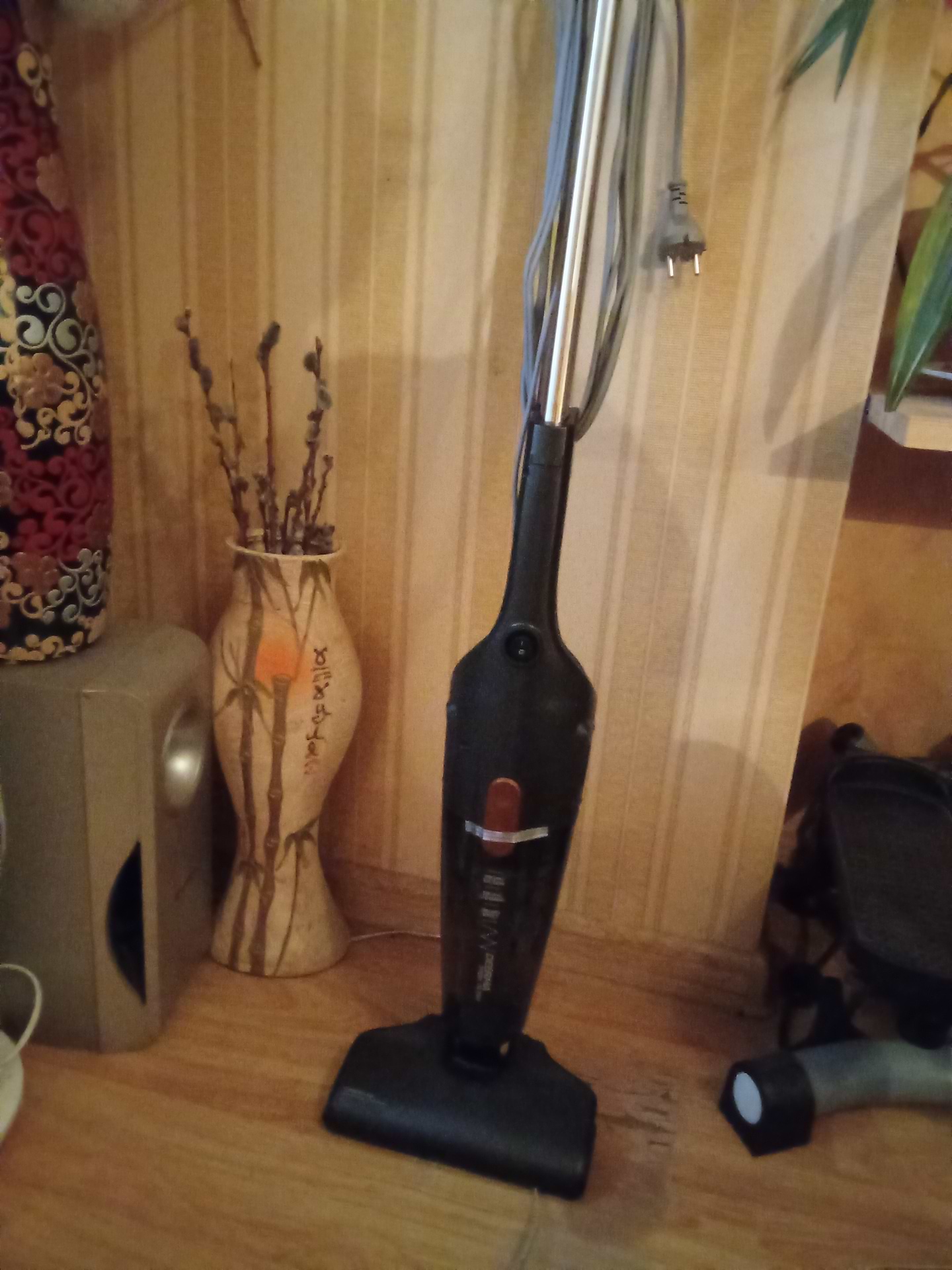 Вже більше тижня користуюсь пилососом. До покупки передивився відгуки і знайшов недолік до якого і сам додам один. По перше, ручка завжди випадає з основної частини: тобто це фабричний недолік і його можна позбутись, якщо у вас є кмітливість, потрібні знання, інструменти та матеріали (і це все при тому, що не можна порушувати цілісність конструкції, аби не позбутись гарантії!) І по друге заявлених 5 метрів шнура і близько немає: переміряли рулеткою - 3,6 метри! І тут уже нічого не поробиш: або інша розетка, або подовжувач. І на мою думку це суттєвий недолік. Ну а з переваг, і дуже великих, це потужність! От не чекав такого від стіка! А також місткість контейнеру для сміття: вже шість разів прибрав у кімнаті, а ще ні разу не витрушував! І потужність досі не впала! За це й поставив 4 зірки, а не 2. А також, ледь не забув, прибрав ще й у машині! Так що, якщо потрібен пилосос для невеликої кімнати і для машини і ви вмієте думати - цей девайс можна брати!