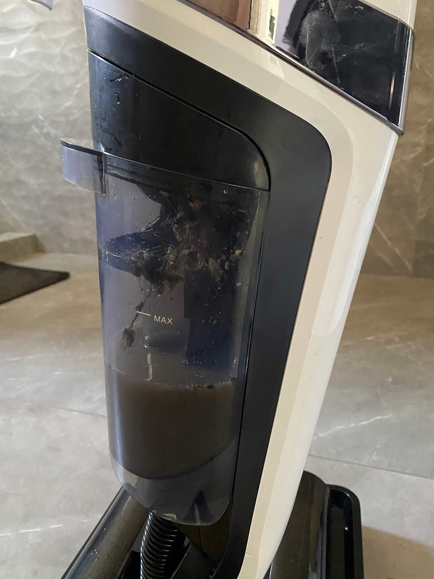 пилосос класний, ось як виглядає колба з брудною водою після прибирання, хоча день перед цим мила плитку звичайною шваброю.