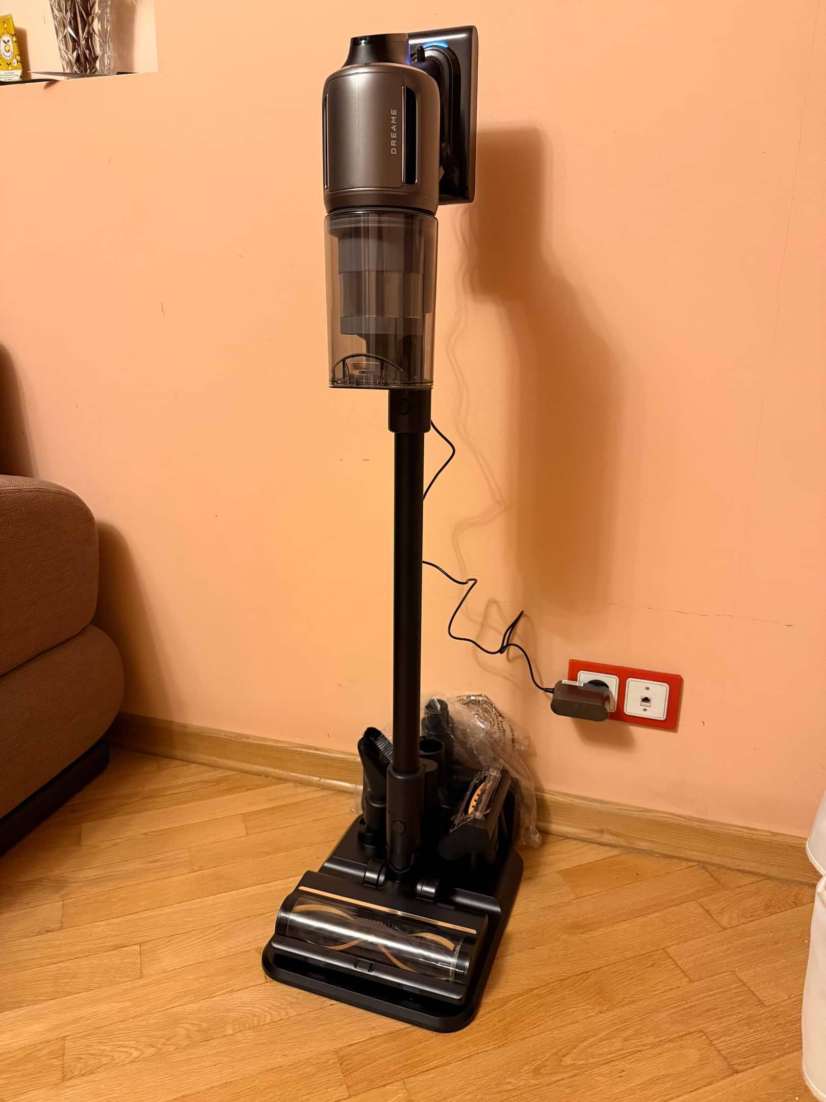 В старом пылесосе часто раздражало, что пыль у стен оставалась даже после уборки, но эта модель справилась лучше. Насадка проходит практически в упор, убирая всю пыль и мелкий мусор. Особенно удобно на кухне и коридоре.