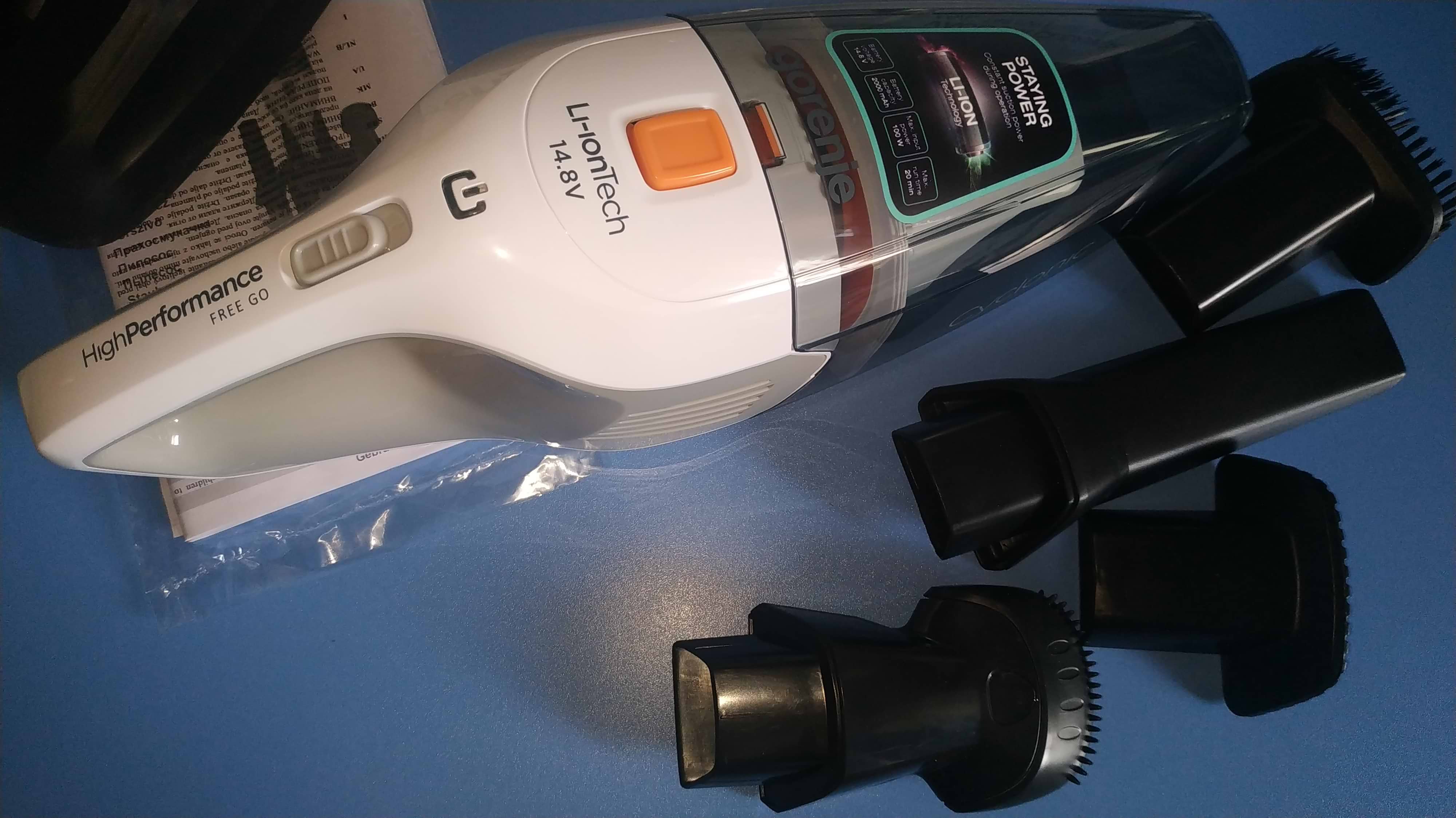 Основой производительности любой портативной электроники сегодня является применение качественного аккумулятора. В Gorenje MVC148FW, цена которого очень приятно ему соответствует, используется литиевая батарея на 14,8 В, благодаря чему владелец пылесоса может ощутить при уборке достаточную мощность. Более того, данный тип аккумулятора всегда готов к работе – его можно подзарядить в любой момент и не переживать, что он будет самостоятельно разряжаться. В общей сложности заряда хватит для уборки до 20 минут, что в редких случаях означает практически полную уборку небольшой квартиры.
