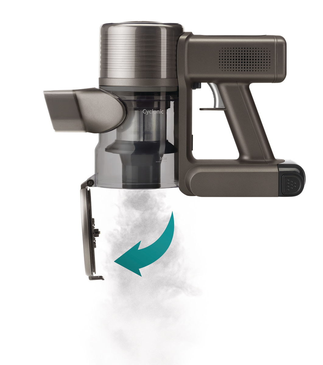 Для обеспечения наилучшей работы вашего пылесоса важно, чтобы фильтр всегда оставался чистым. Функция быстрой очистки QuickClean упрощает этот процесс: после каждой уборки просто поверните ручку на задней части контейнера для пыли, и фильтр очистится, сохраняя оптимальную продуктивность вашего устройства.