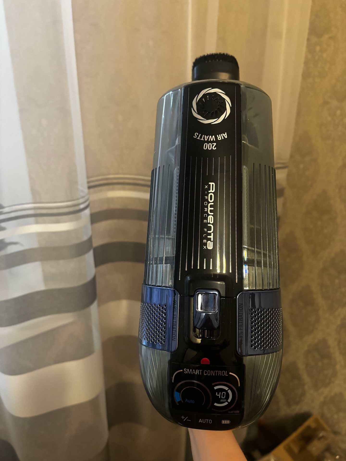 Заряду в еко режимі вистачає на 2 прибирання 2 кімнатної квартири, ручне регулювання потужності є перевагою, в комплекті наявний додатковий фільтр, який можна мити. Вдома є ще робот-порохотяг від Ровенти (задоволена), тому вибір з бездротовим був очевидним. Мийну насадку поки не зацінила, робот краще справляється з вологим прибиранням. Сподіваюсь, що довго прослужить