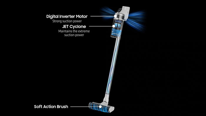 Более совершенная технология распределения воздушных потоков и улучшенная система циклонных фильтров JET Cyclone позволяет пылесосу Samsung Jet 70 turbo VS15T7031R4/EV развивать мощность всасывания до 150 Вт. Этот постоянный поток создается при помощи невероятно высокой скорости вращения инверторного двигателя с цифровым управлением. Это помогает еще лучше осуществлять отсеивание мелких частиц в каждом циклонном фильтрующем элементе и гарантировать устранение всех загрязнений с пола.