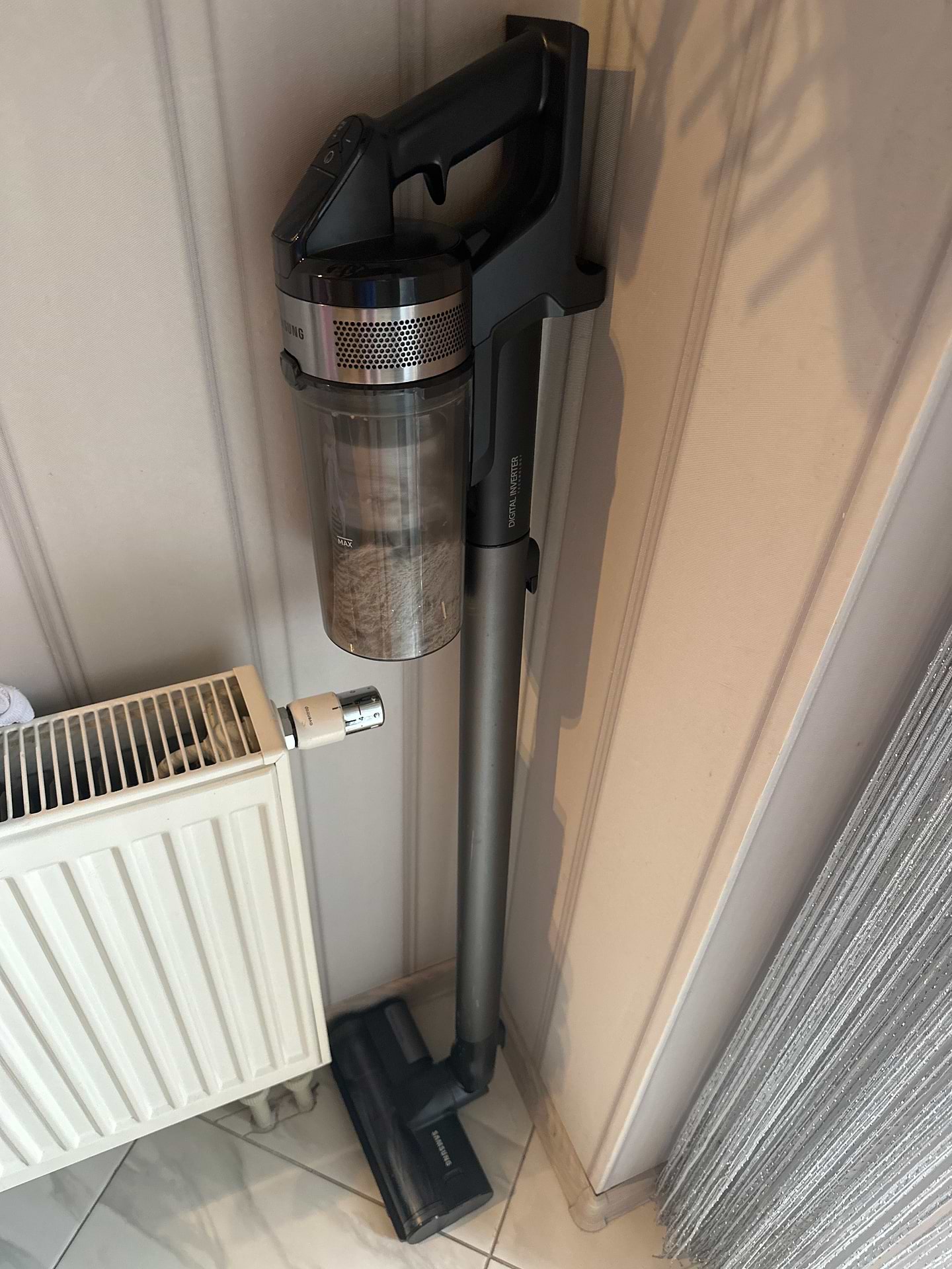 Користуюсь пилососом Samsung VS20B75ADR5/UK вже кілька днів і дуже задоволений покупкою. Пристрій легкий, зручний у використанні, акумулятора вистачає на повноцінне прибирання квартири. Приємно здивувала потужність всмоктування — добре справляється навіть із килимами та шерстю тварин. Дизайн сучасний, компактно стає на зарядну станцію, не займає багато місця. Однозначно рекомендую для щоденного прибирання дому!