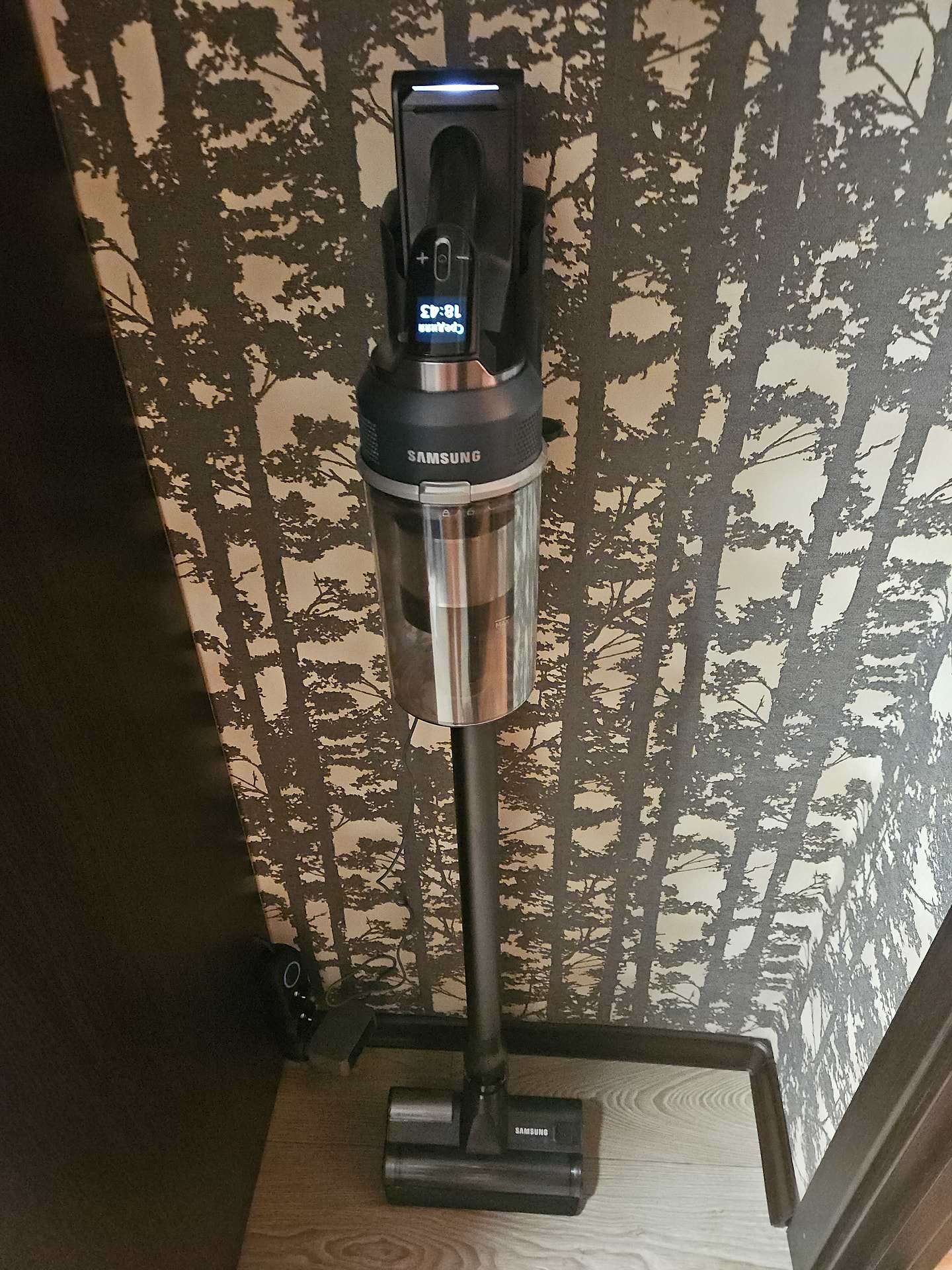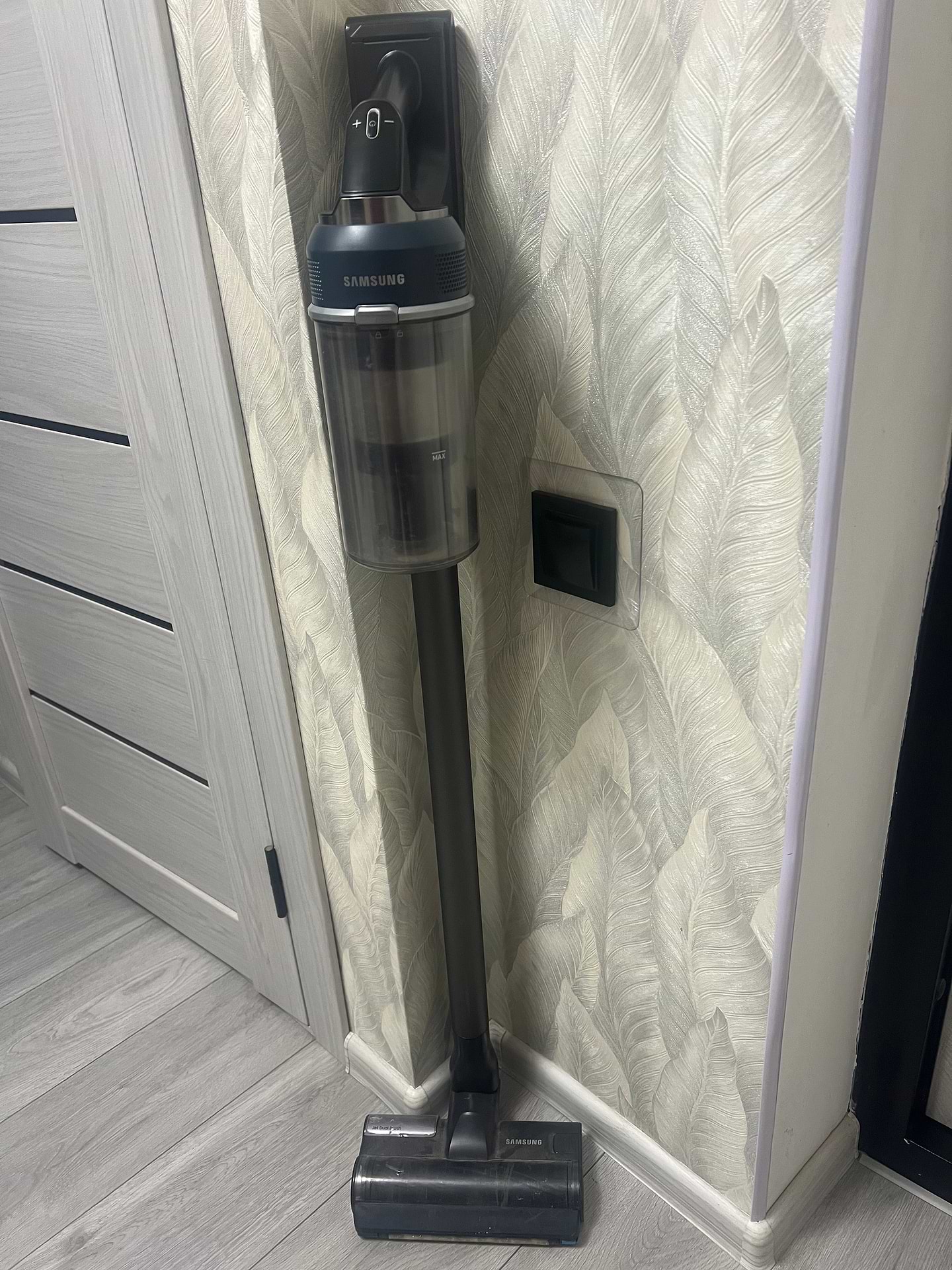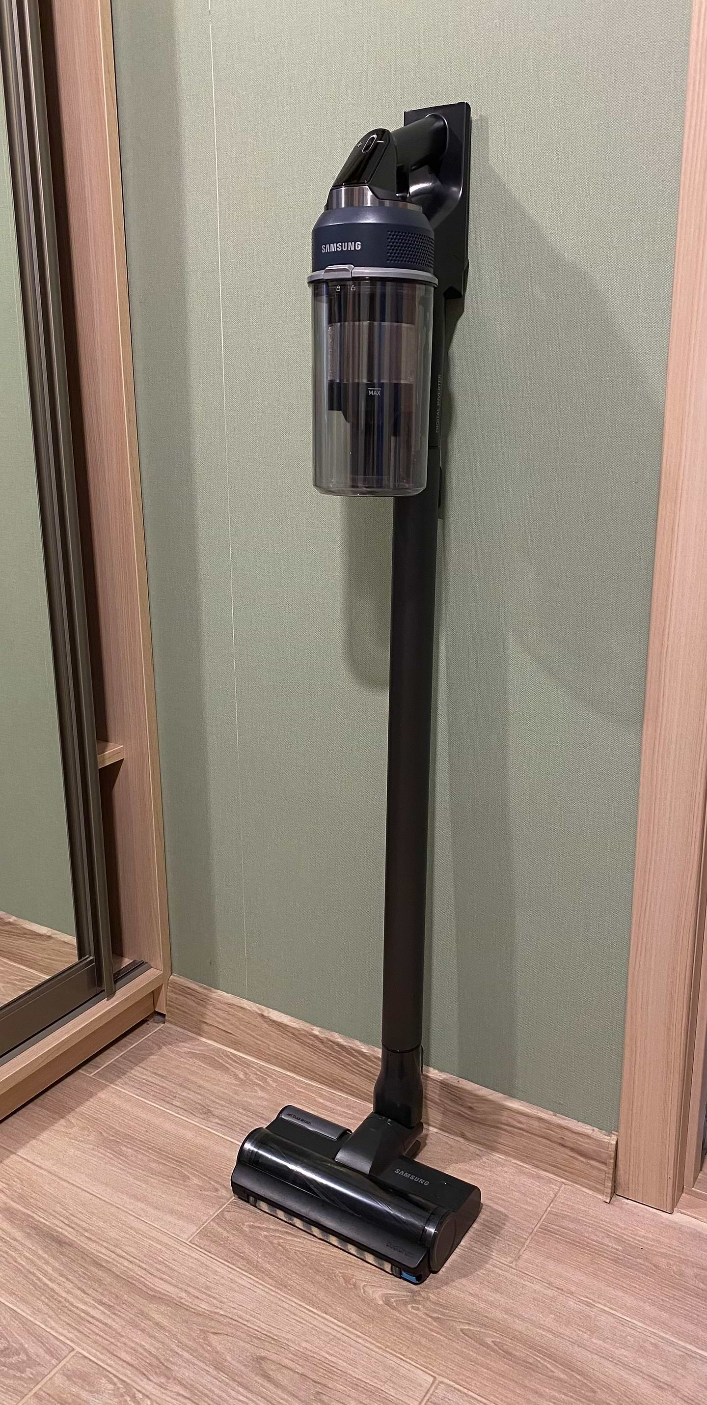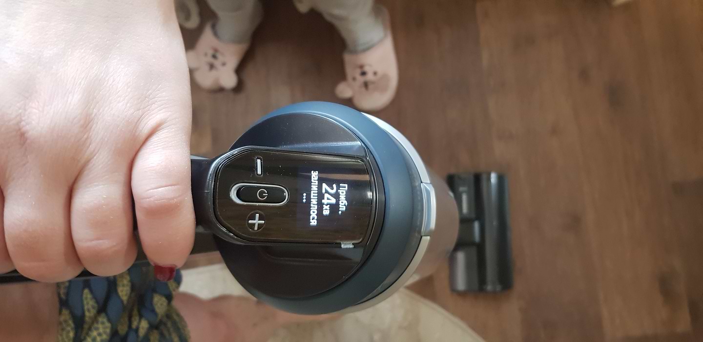 Чудовий вертикальний пилосос! Довго вибирала, бо сумнівалася між іншими брендами, але вибрала цю модель Самсунг і абсолютно не шкодую! Дуже потужний, чудово справляється з нашим килимом навіть на середній швидкості (звичайним полососом відчистити килим було важко). Зручно тримати в руці. Легко розбирається, легко змінюються насадки. Якісні матеріали, гарний пластик. Дисплей показує кількість хвилин , доступних до використання у різних режимах. Досить тихий, але не можу сказати, що він безшумний. На максимальній швидкості досить голосно працює. Щітка з підсвіткою- це просто вау, вся родина випробувала і всім дуже сподобалось. Щітка для збору пилу делікатно визбирує пилюку на підвіконнях, меблях, поличках. Щітку для вологого прибирання ще не випробовували, але впевнена, що вона теж класно працює. Всім, хто сумнівається, раджу дану модель. Дякую Комфі за чудовий сервіс!