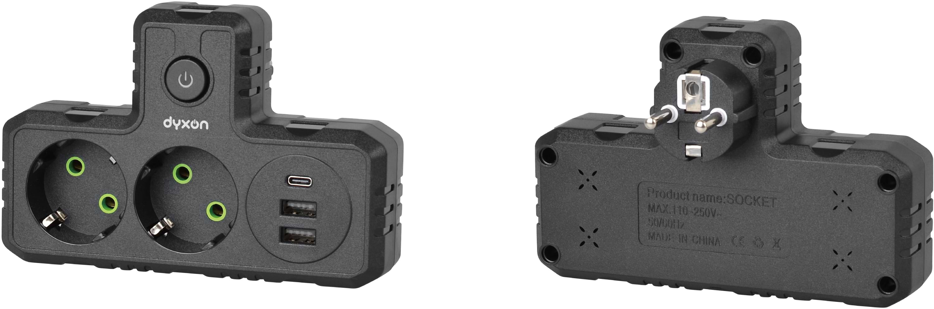 Разветвитель 220В Dyxon 2+3 USB-A + USB-C (PD) Power switch Black (DXN-MFP-23PD-PS-B)