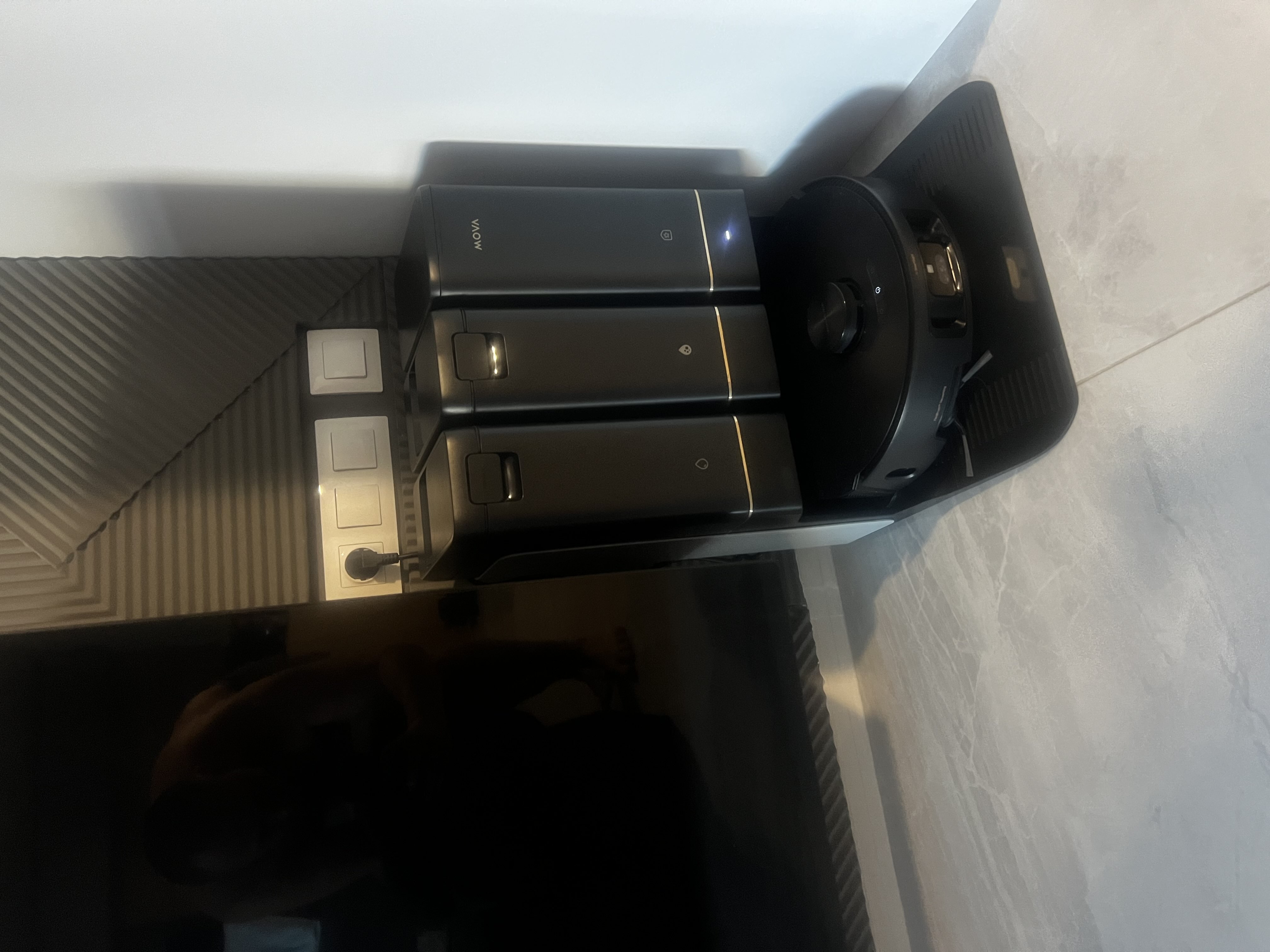 База пылесоса включает три резервуара — для чистой воды, грязной воды и моющего средства. Она сама добавляет, сливает и очищает жидкости, моет швабры при 75°C и собирает пыль в контейнер объемом 4 л, обеспечивая до 120 дней работы без вмешательства человека.