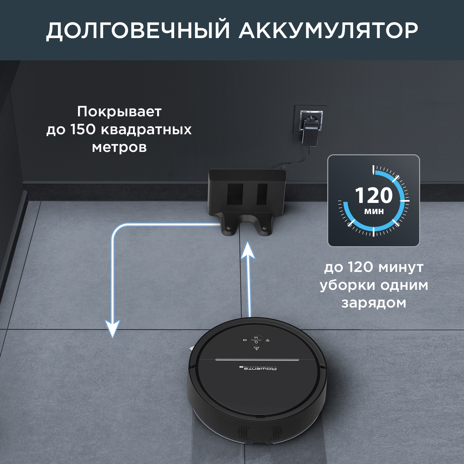 Увеличенное время уборки: до 120 минут работы на одном заряде
