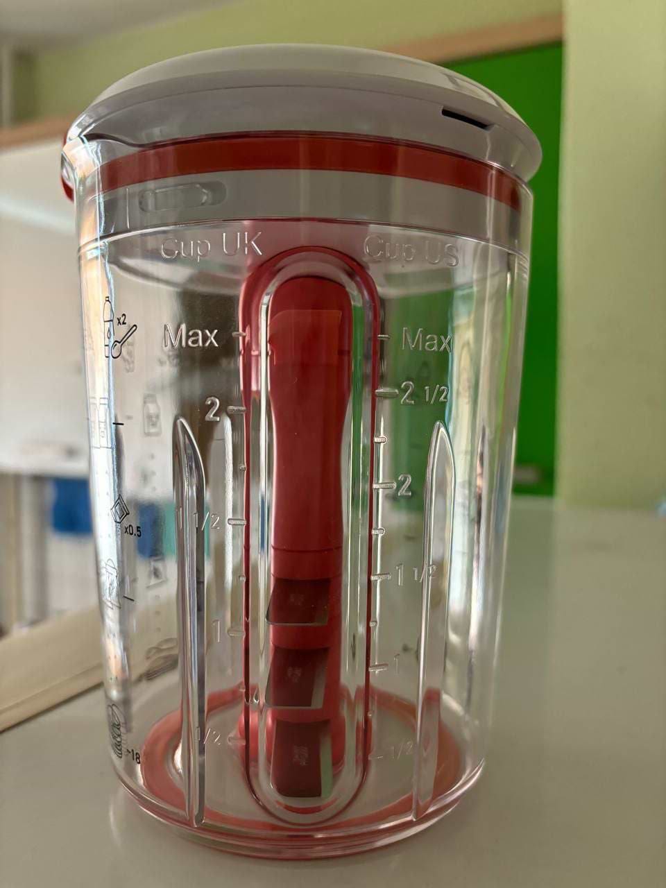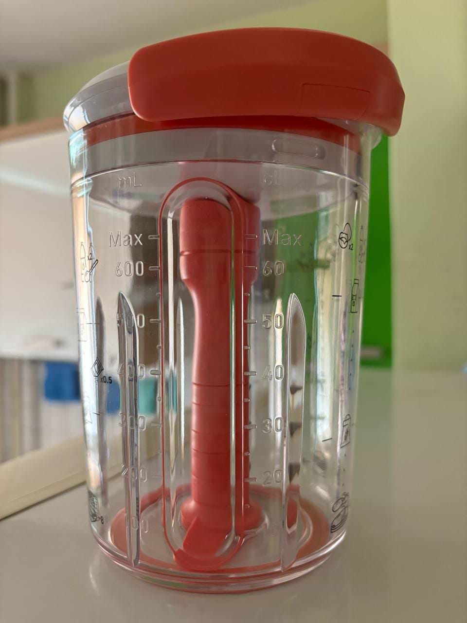 Цей прилад справді замінює миску, вінчик і мірний стакан в одному. Простий у використанні — декілька рухів і одразу рівне тісто без грудочок. Його зручно тримати в руці та легко мити. Ідеально підходить для швидкого приготування млинців чи панкейків.