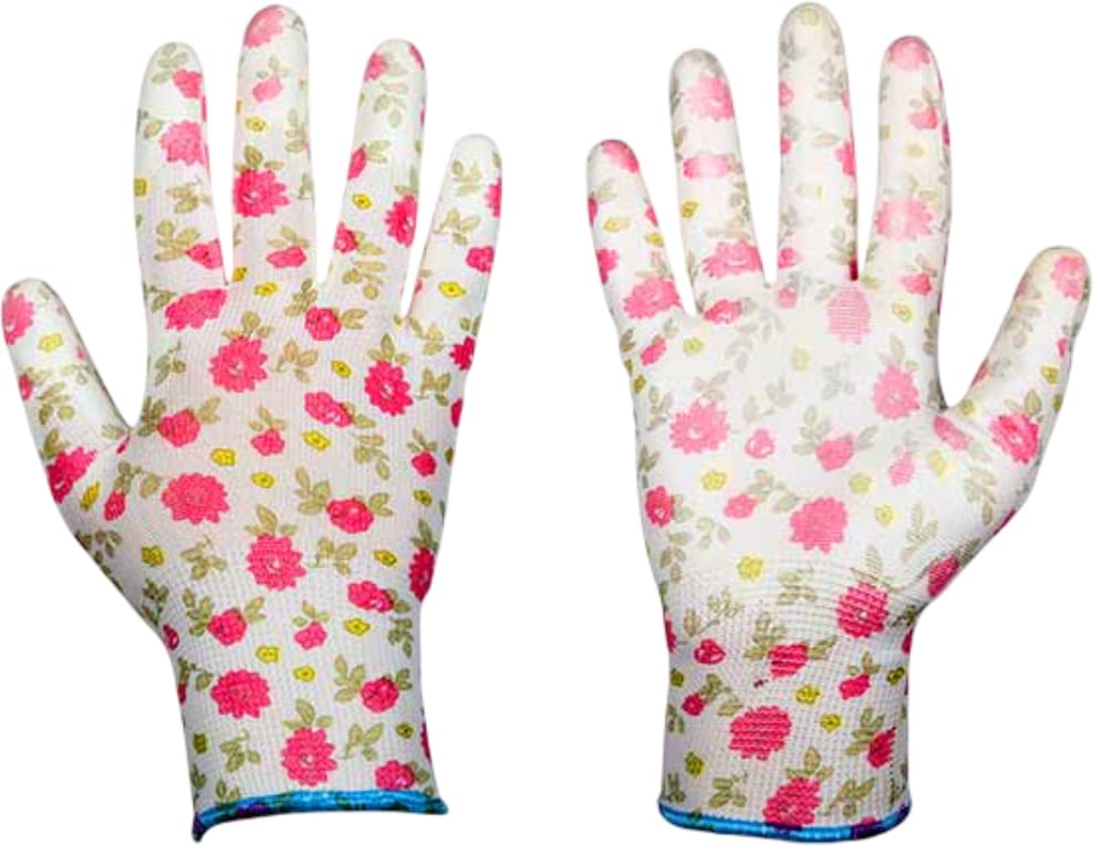 Перчатки садовые BRADAS Pure Pretty с ПУ-покрытием размер 7 12 пар Розовые с белым (RWPPR7)
