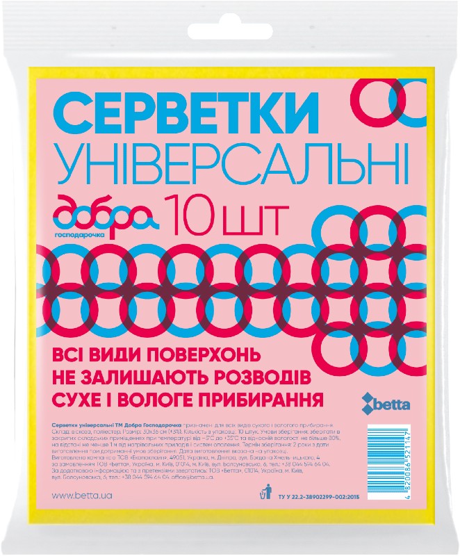 Салфетка бытовая Добра господарочка универсальные 10 шт. (4820086521147)