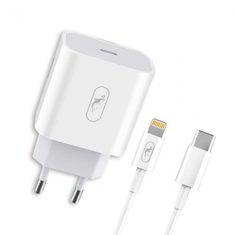 Сетевое зарядное устройство SkyDolphin SC18EL PD2.0 1USB-С, 3A White+кабель Lightning (MZP-000156)