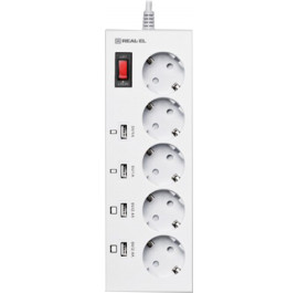 Сетевой фильтр REAL-EL RS-5F CHARGE 4 (5 роз, 4 USB, 3м), 16А