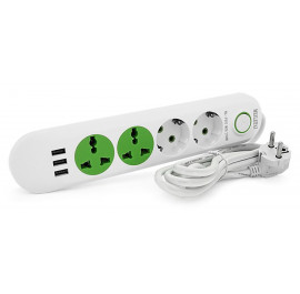 Сетевой фильтр Voltronic F01U 2 розетки EU + 2 розетки Universal + 3 USB 1.5 м White