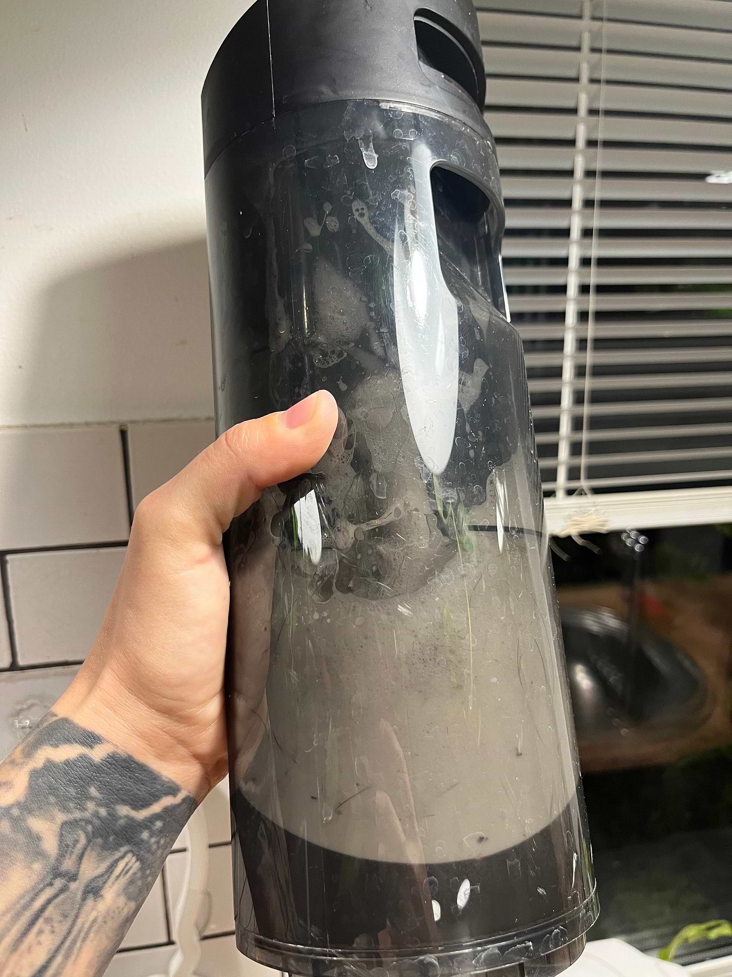 Хоч написано що містить протипінний засіб, і що він для пилососів, але все одно він піниться. Можливо є різні пилососи і в якихось можна такий рівень піни. Але мій dreame h12 dual залишає пінні сліди, хоч з рідним засобом від дрімі такого не було. Але рідний засіб мені зовсім не подобається, ні запаху, ні відчуття чистоти, а цей ваніш дуже класно пахне, і класно миє. Сподіваюсь, цей рівень піни не нашкодить моєму пилососу.. та і пінні сліди трохи напрягають, може це через рельєфну плитку. Але майте це на увазі. У мене є собака яка любить пол лизати, думаю для неї буде дуже шкідливо, якщо вона налижеться цієї піни( на фото бак з відпрацьованою водою. Але продовжу експериментувати, може менше засобу додам
