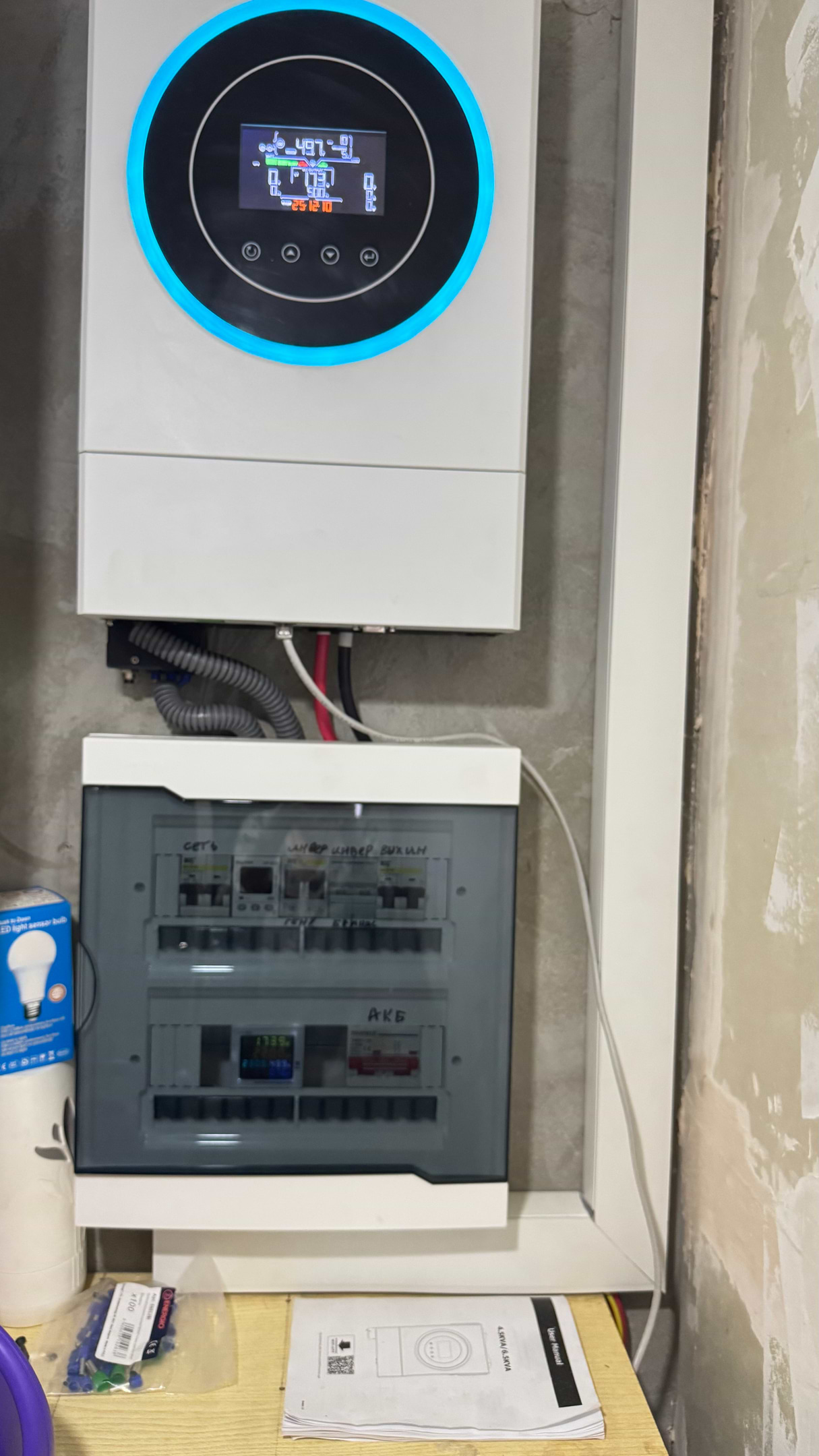 Немає шнура, який зєднює інвертор та акумулятори, прийшлось придбати окремо. І не знайшла додатка в інтернеті пише помилка.