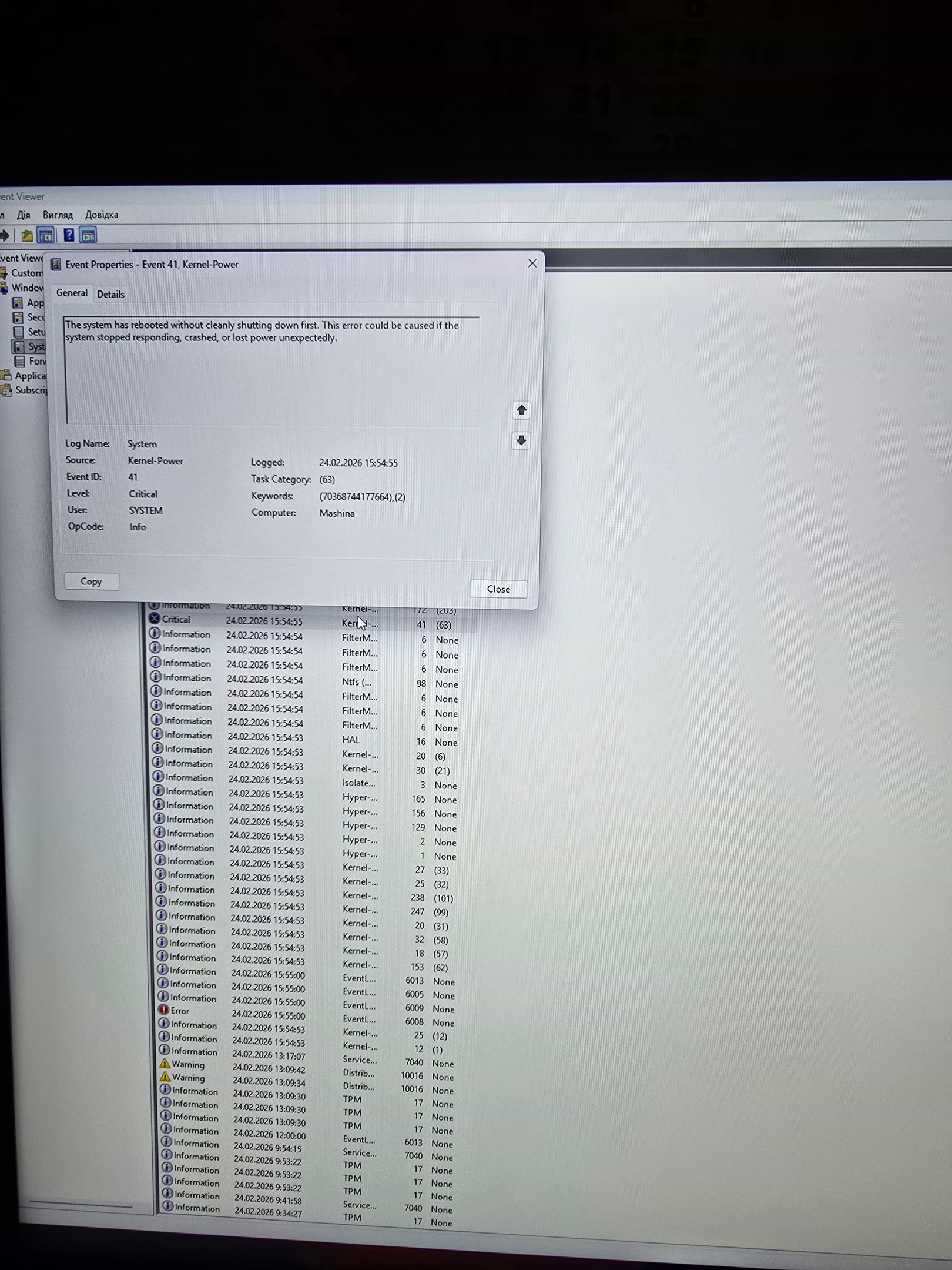 Причина виявилась у налаштуванні оперативної пам’яті — в BIOS був увімкнений профіль EXPO 6000 МГц (заводський розгін). Після зниження частоти пам’яті до 4600 МГц система стала повністю стабільною.