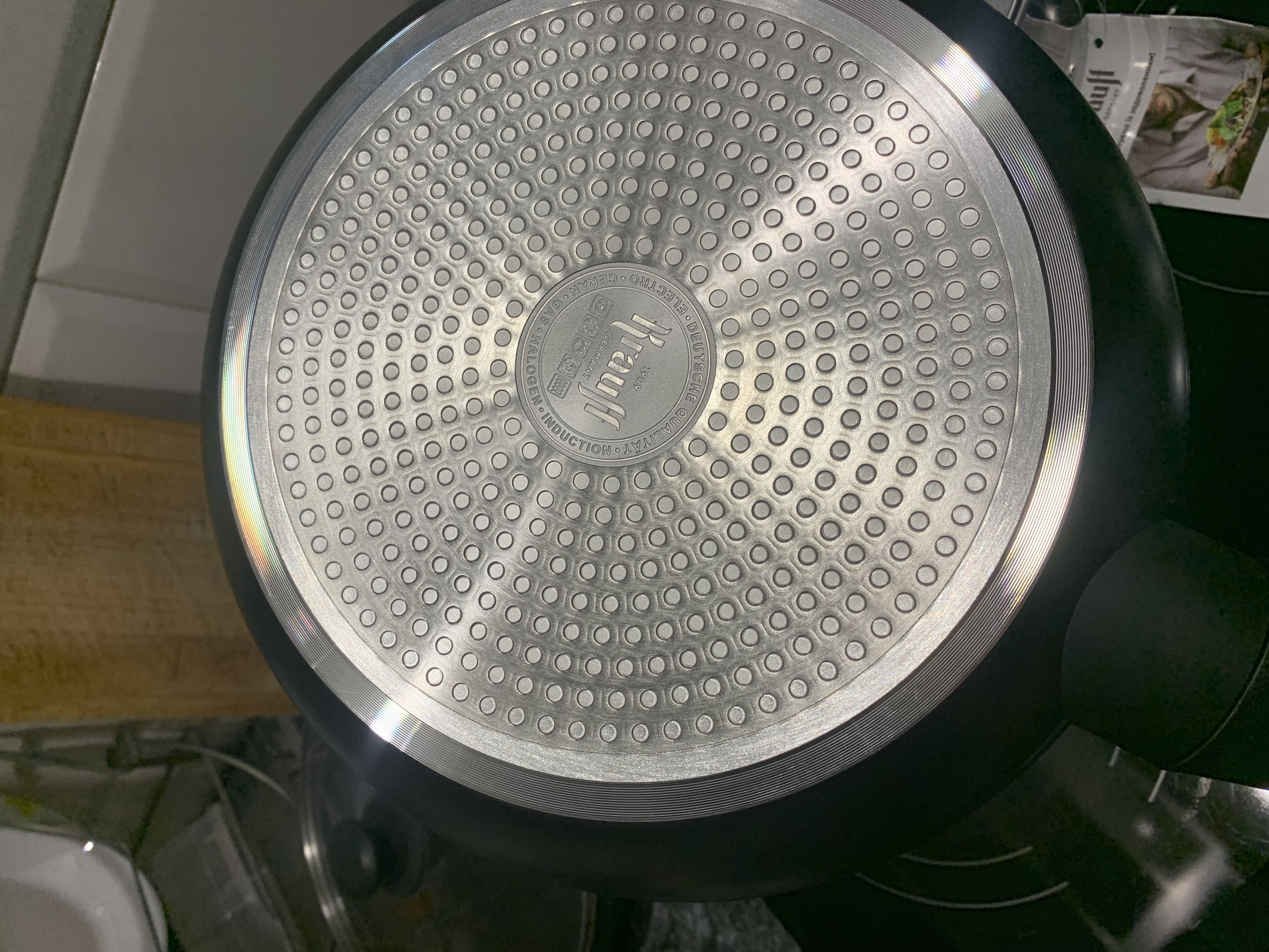 З мінусів: за декілька тижнів з'явились полоси підряпин, хоча користуючь тільки сіліконовою лопаткою, наскільки вистачить покриття не знаю, але щось підказує що ненадовго.