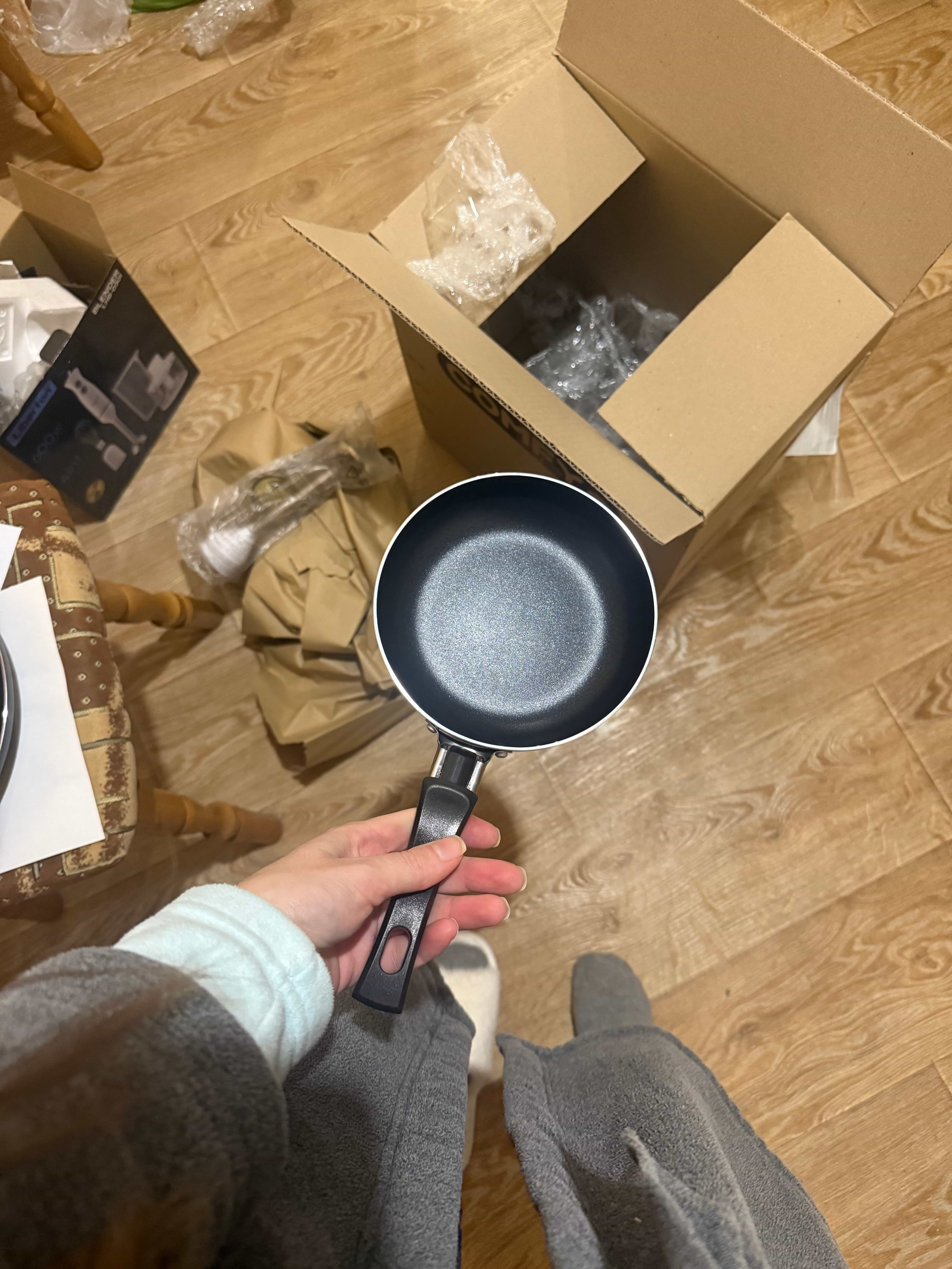 отримала, сковорідка вживу менша ніж здається, буквально на одне яйце чи оладушку