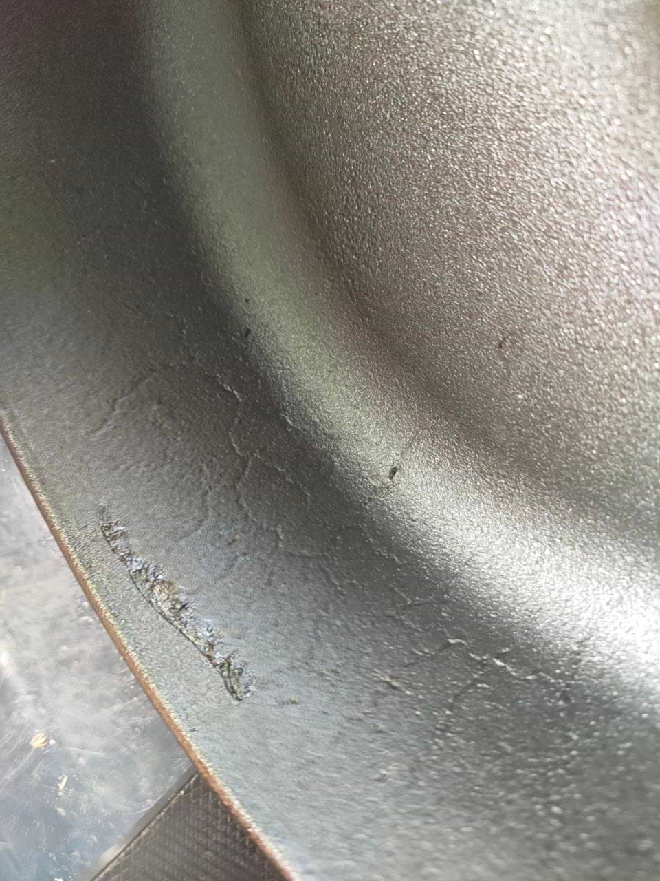 Не знаю, брак це чи норма для цих сковорідок, але мені прийшла отака. Шкода, що одразу не перевірила, бо що ж може бути з чавуном, правда? Як виявилось може. Навіть дуже.