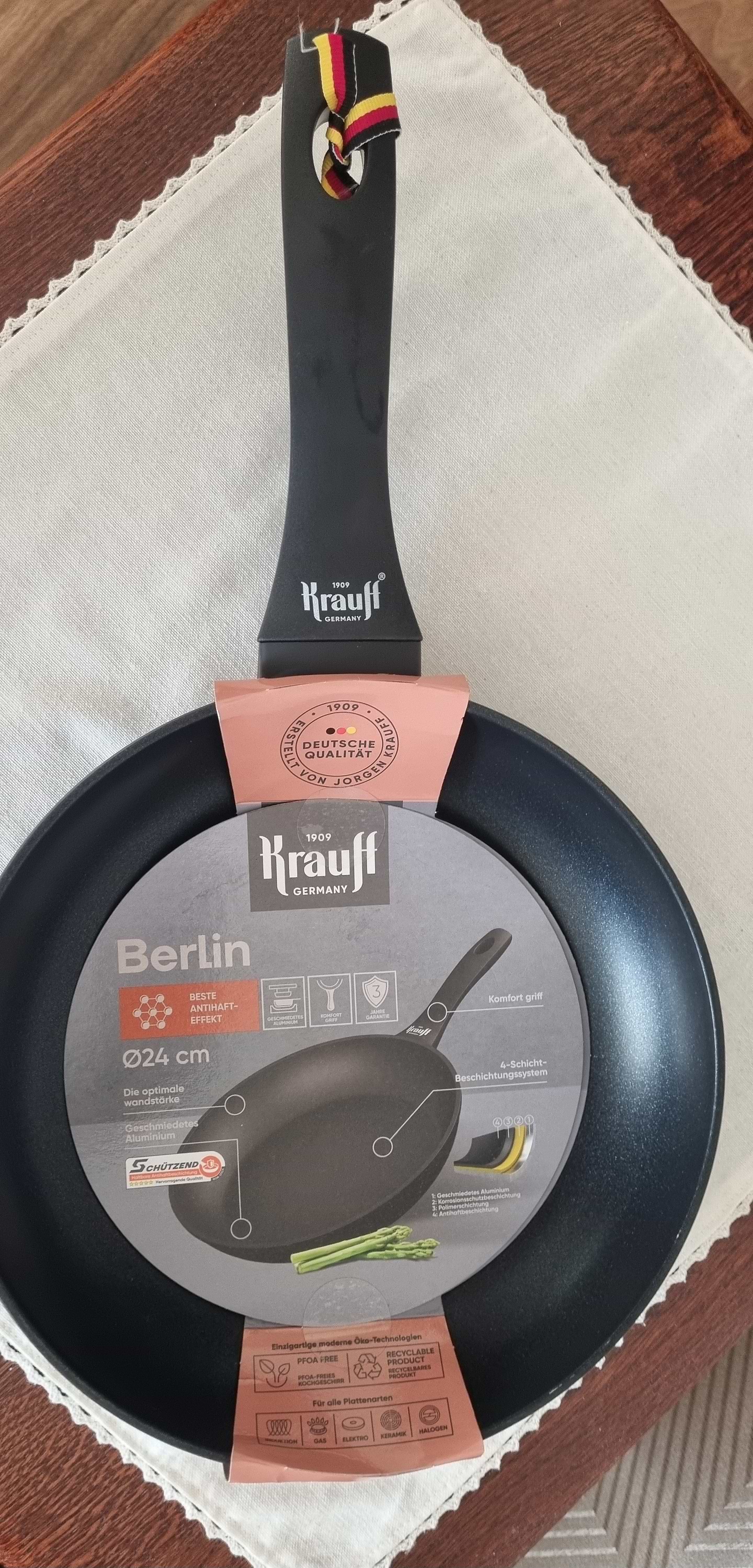 Маленька, комфортна, практична. Дуже подобаються сковорідки від Krauff. Ще брали схожу сковорідку WOK, то дуже задоволені. Рекомендую