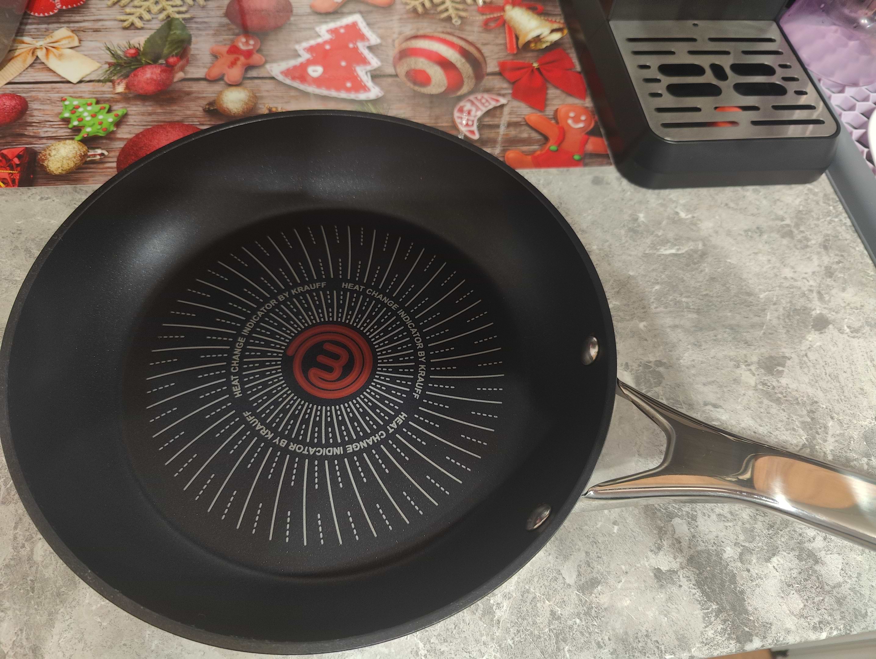 Розчарована товаром (( Обирала саме цю сковорідку із за мріі мати цей індикатор температури ( нажаль він не працює , два рази пробувала і він зовсім не змінює колір , зі сковорідки вже йшов дим , аде колір не змінився (( дуже шкода , розумію що повертати немає сенсу так як вона вже була у використанні . Тож дуже розчарувалась (
