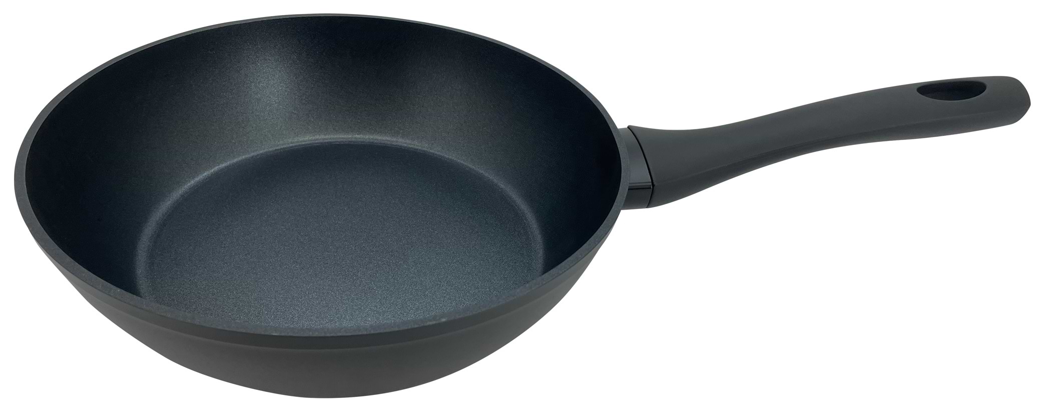 Сковорідка обʼємна,виїмка, що і шукала, ручка не нагрівається, за це переживала, але саме головне нічого не пригорає, дарує одне задоволення готувати, супер сковорідка!