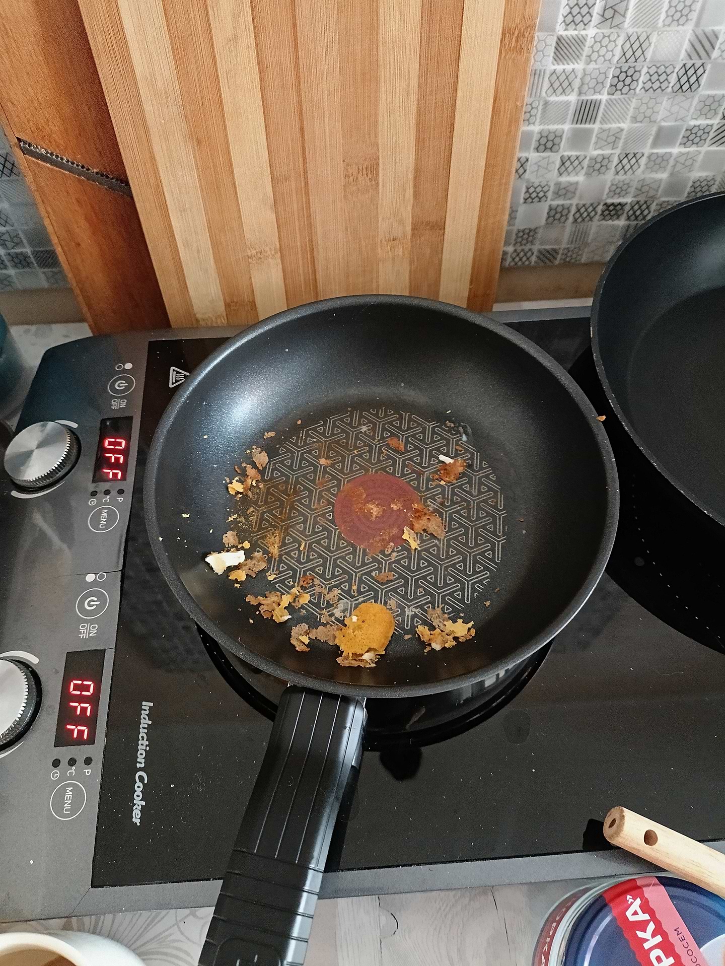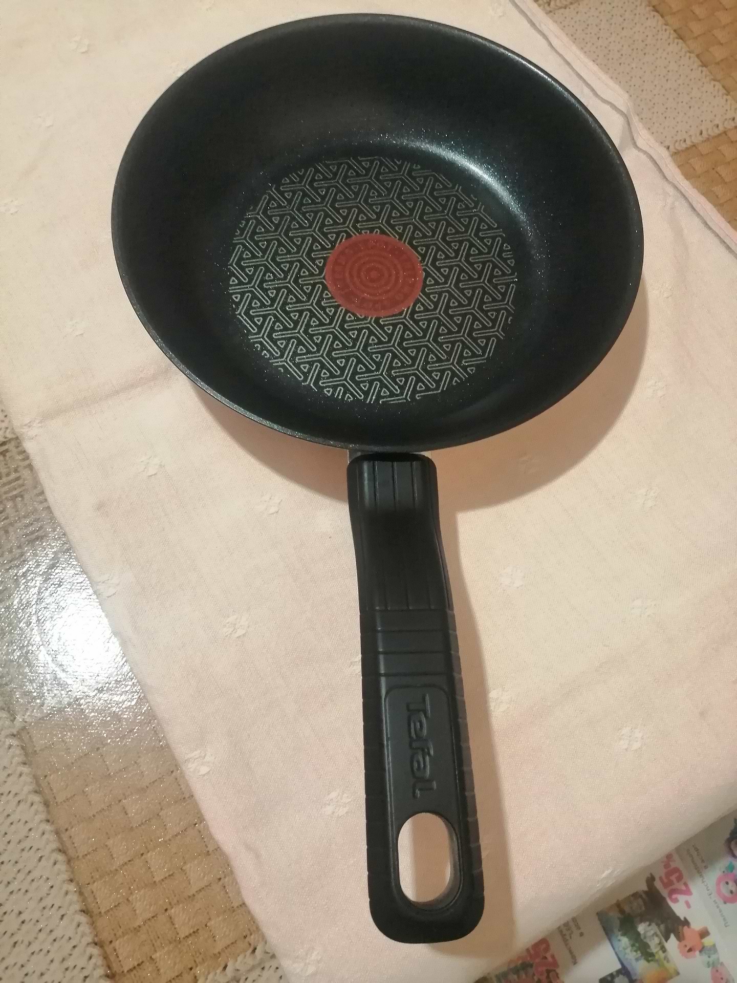 Проста у користуванні. Щоб щось посмажити не потрібно дуже над нею стояти. Червоний кружечок коли трохи стає темнішим, додаю трохи олії та можна починати. Смажить якісно з обох боків та не пригоряє. Яєшня виходить така як ми любимо, без засмаженої скоринки з цілим жовточком. І це все легко готується на середньому вогні. Для мене сковороди Тефаль найзручніші у використанні!