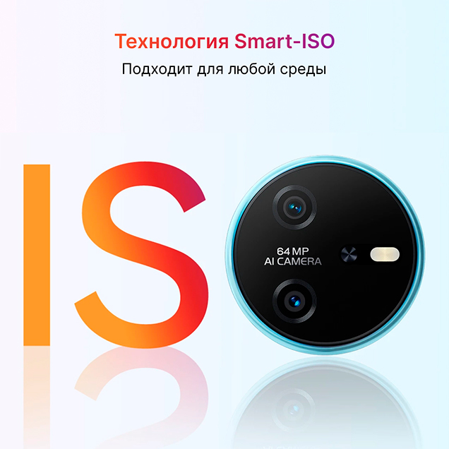 Smart ISO самостоятельно настроит уровень чувствительности сенсора согласно освещению - это гарантирует оптимальный баланс контрастности и яркости на ваших фото и видео.