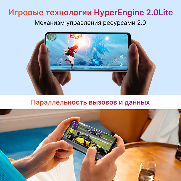Oscal TIGER 12 использует технологию HyperEngine 2.0 для быстрой и плавной работы во время игры. Она разумно распределяет нагрузку между процессором и оперативной памятью, предотвращая зависание. Система также экономит заряд аккумулятора, оптимизируя работу смартфона.