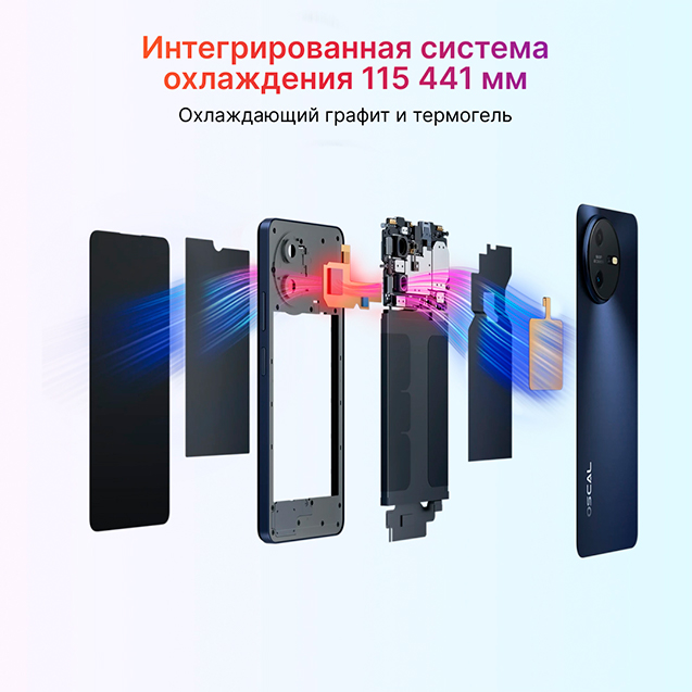 Oscal TIGER 12 оснащен эффективной системой охлаждения, где использованы графитовые элементы и специальный термогель. Такая конструкция хорошо отводит тепло во время нагрузок, не давая смартфону перегреваться. Благодаря этому устройство стабильно работает даже при продолжительном использовании игр или выполнении сложных задач.