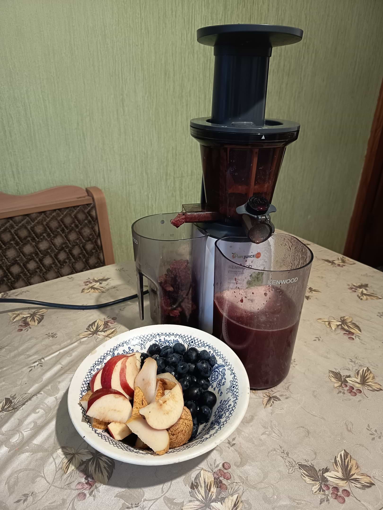 Дякую ..дуже зручка, отжим хороший, потужній, без залишков великих частин. Жмих сухий достатньо. Сік з лістових овочей роблю постійно.. морква та яблуко чи свекла..