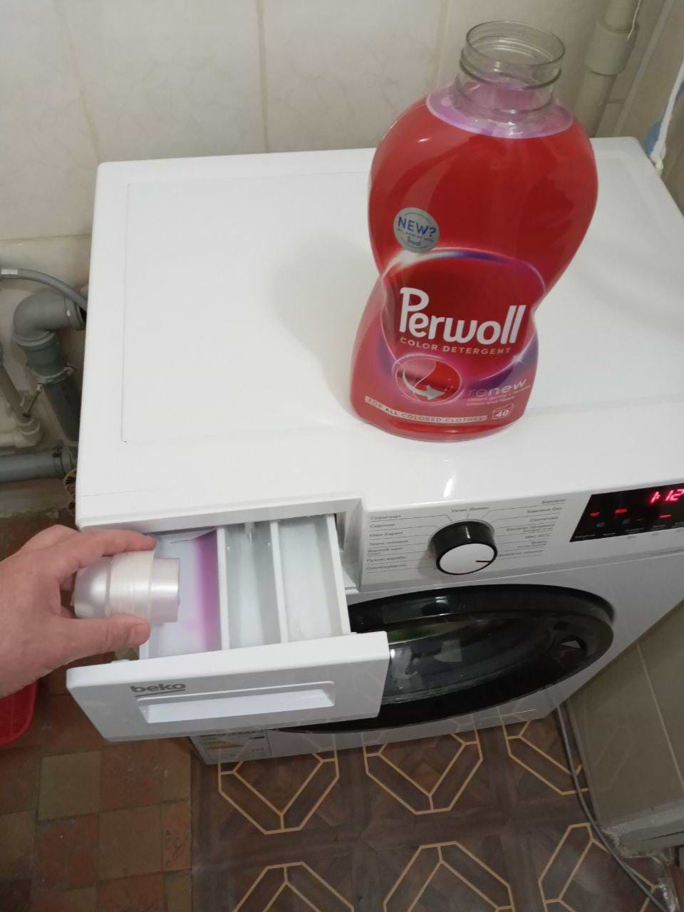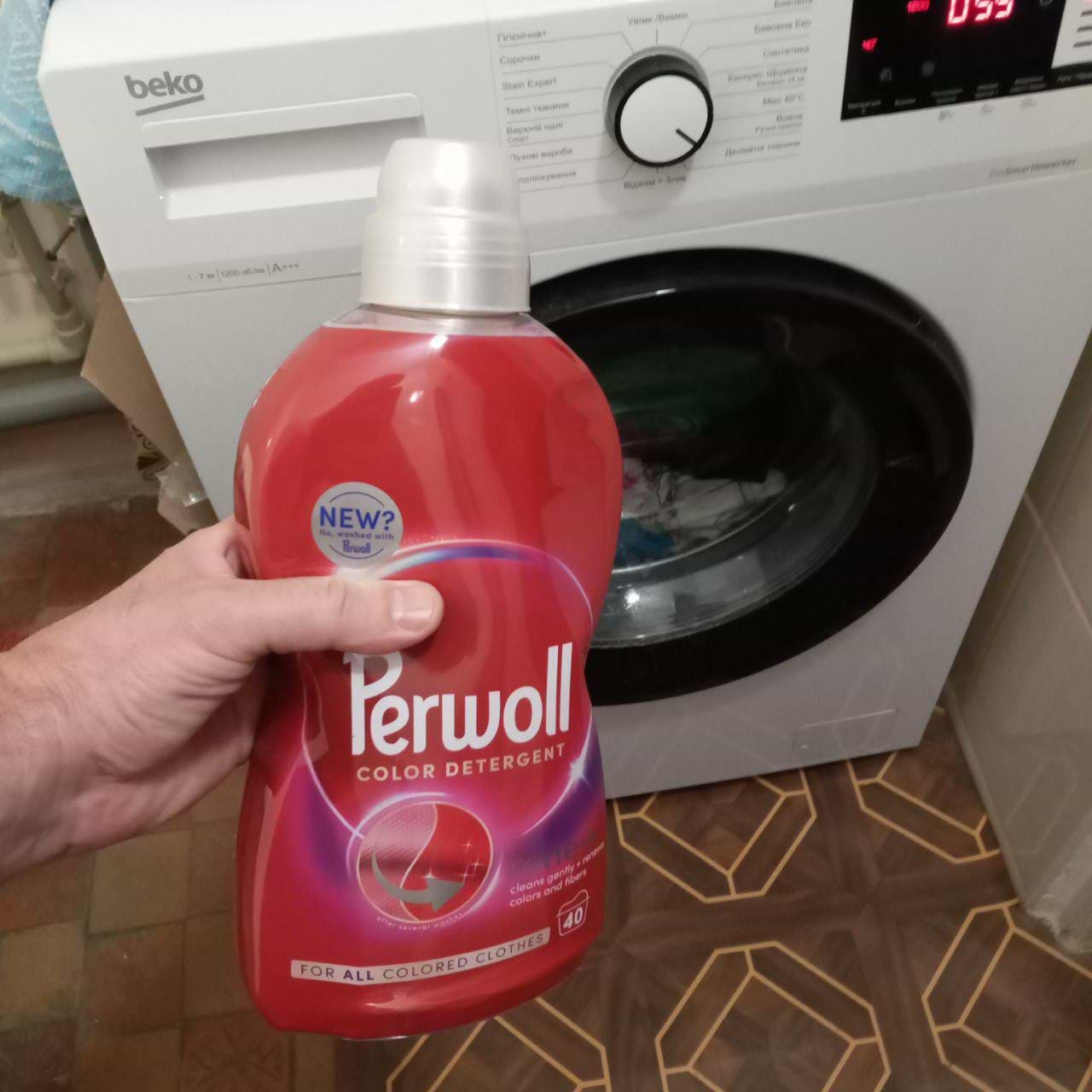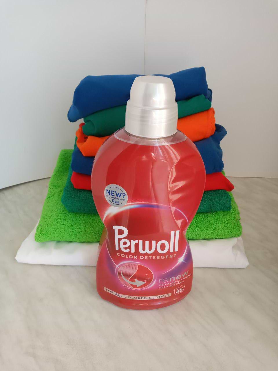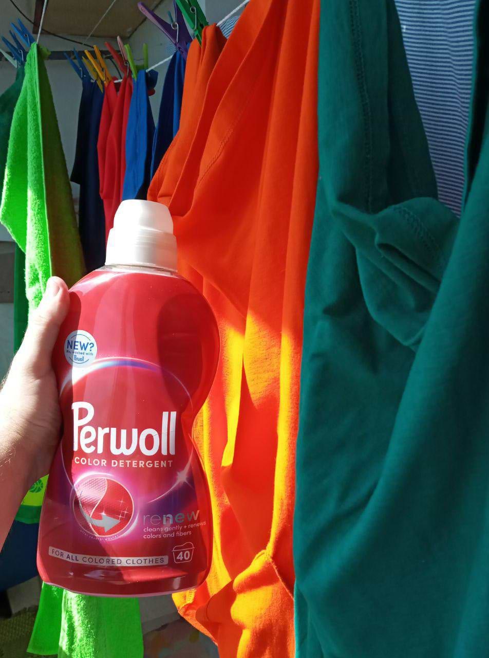 В червні-липні, в сезон ягід, тестував гель Perwoll Renew Color Detergent для кольорових речей. Гель має гарний фіолетовий колір, аромат чудовий, віддалено пахне весняними квітами. Дуже зручний дозатор гелю який знаходиться у кришечці і не губиться, на самій пляшці є виступи і заглиблення для пальців, щоб було зручно тримати; на етикетці пляшки є інструкція із використання для різної жорсткості води, що дуже зручно; пляшка зроблена з переробленого пластику і далі піде на переробку. Різнокольорові яскраві речі, а особливо рушнички і постільна білизна, після прання залишаються м'якесенькими, чистими і яскравими, виглядають добе – а головне мають свіжий аромат, що зберігається протягом тривалого часу, тканина більш щільна і розглажена.