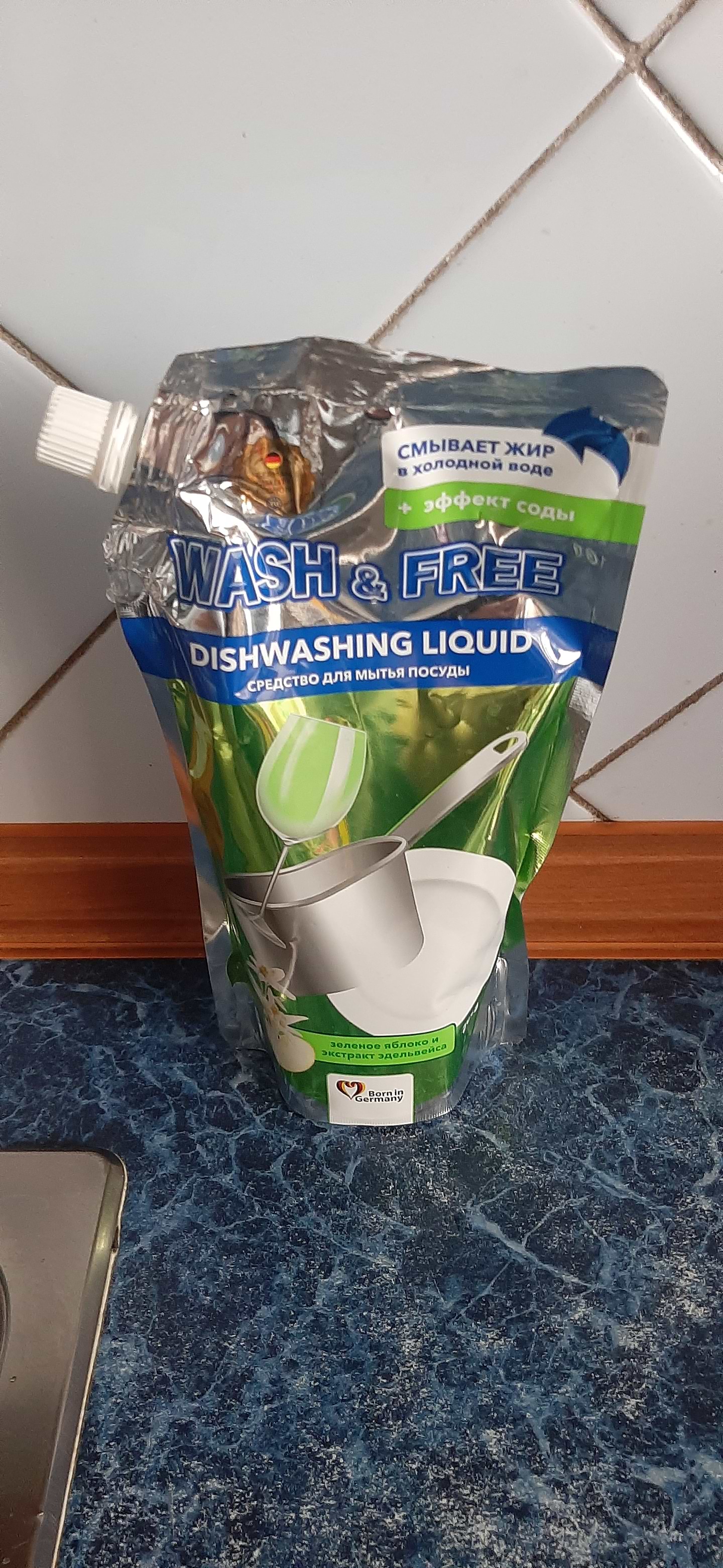 Средство для ручного мытья посуды WASH & FREE Зелене яблуко та екстракт едельвейса (doypack) 500г