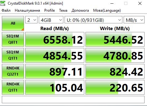 | Скорость записи | 6900 МБ/с | ||