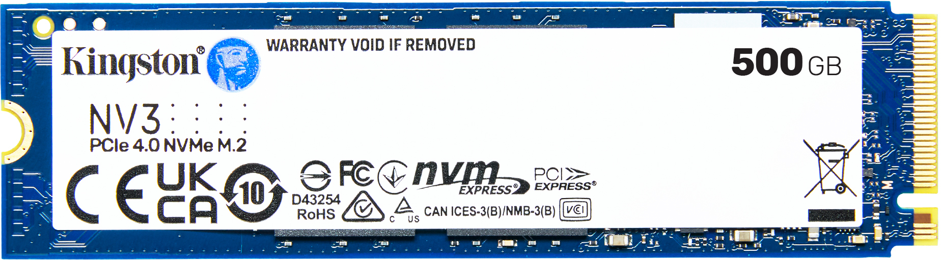 SSD-накопитель внутренний Kingston NV3 500GB M.2 2280 NVMe PCIe 4.0 x4 3D NAND (SNV3S/500G)