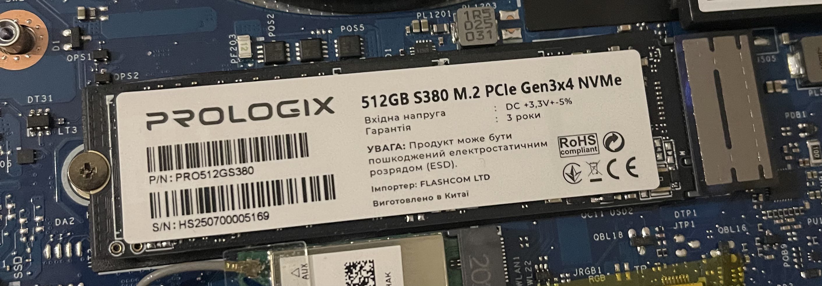 Уценка - SSD-накопитель внутренний ProLogix S380 M.2 2280 512GB PCIe 3.0 x4 NVMe TLC (PRO512GS380)