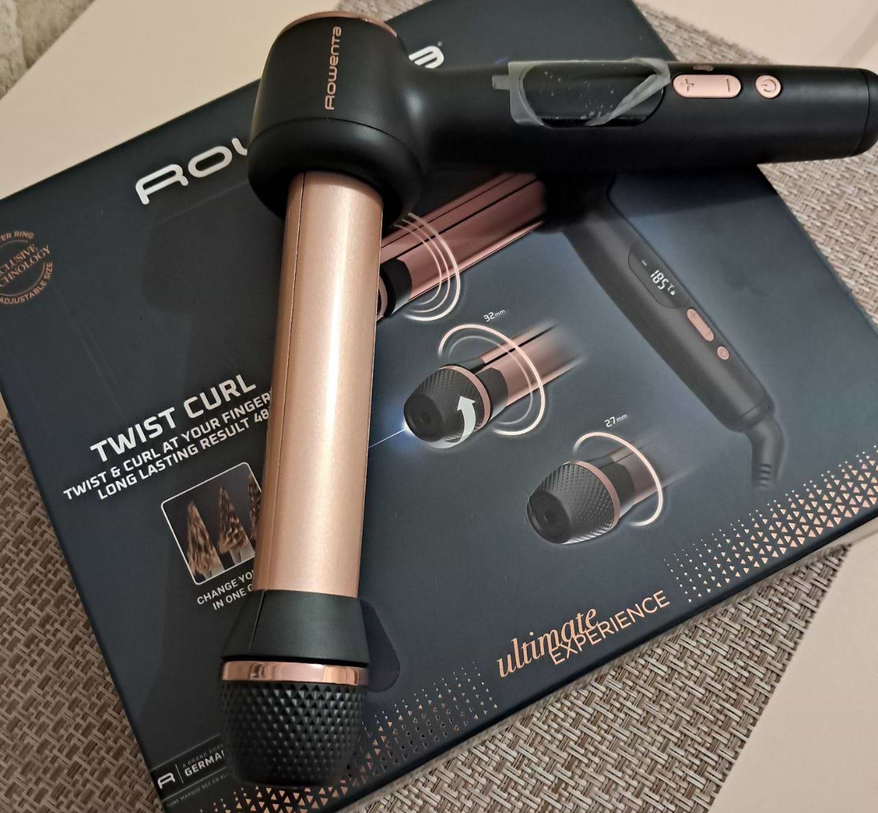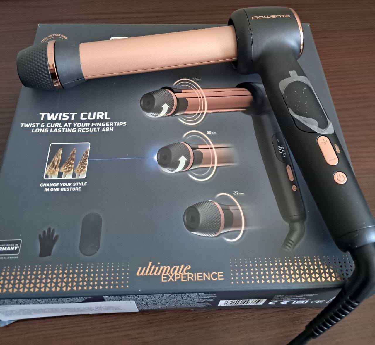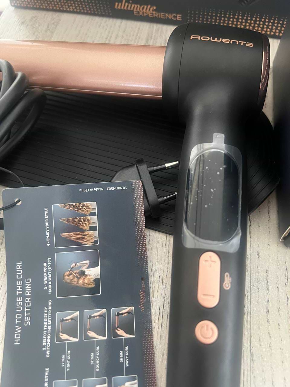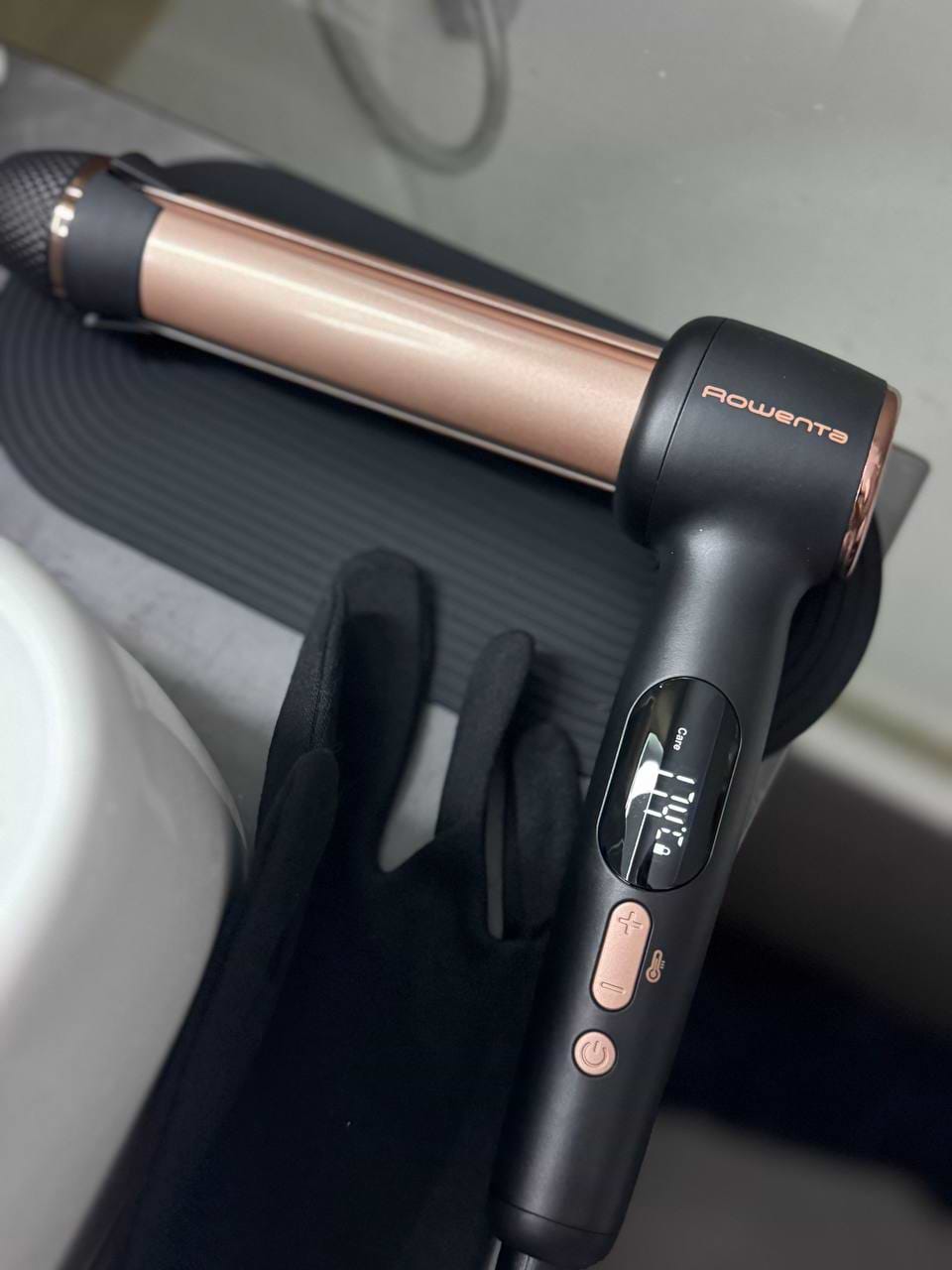 Зручна форма і просте регулювання коліщам, яке знаходиться на корпусі, товщину майбутніх локонів, робить процес надзвичайно швидким. На ручці знаходиться великий дисплей, для постійного контролю температури, він має чотири температурних режими, для різного типу волосся. В комплекті для зручності є рукавичка і термостійкий килимок, на який можна покласти стайлер під час використання. Дуже крутий, рекомендую.