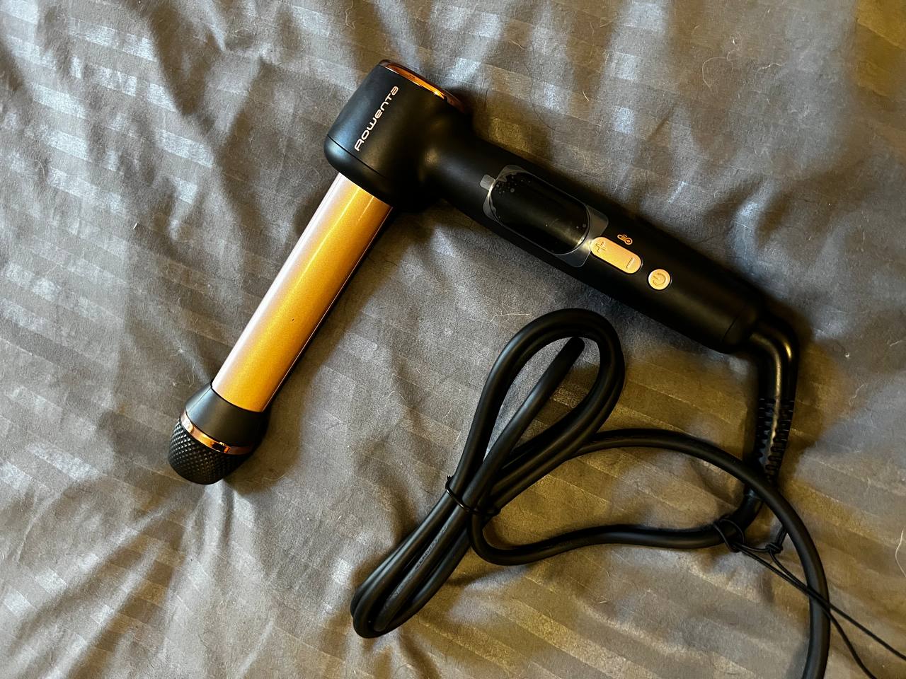 Незвична форма виявилась набагато зручнішим, аніж стандартні варіанти. На кінці є спеціальний ролик, яким можна регулювати товщину майбутніх локонів. На ручці є дисплей і кнопки для керування температурою. В комплекті є рукавичка, для зручності роботи із зачіскою, та чохол тля зберігання. Класний як для себе, так і на подарунок. Я ним дуже задоволена.