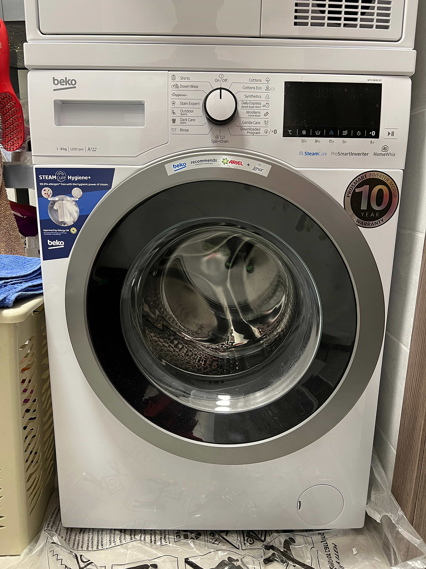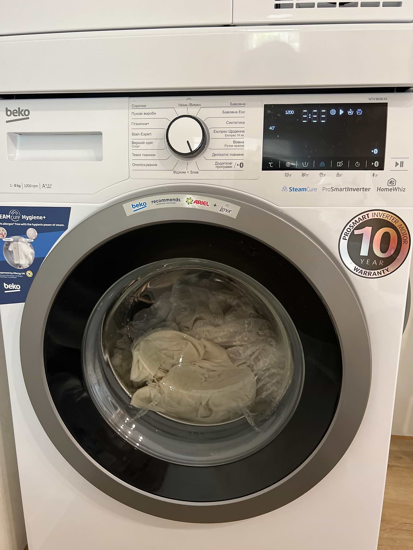 Купив цю машину довірившись відгуку одного з блогерів)) таке в моєму житті вперше, але вибором поки що задоволений. Обʼєму вистачає, віджим чудовий, тихо працює, купа програм, але варто знати, що на 8кг завантаження не всі, а тільки 4-5 з них. Я ще й сушилку з цієї серії купив і вона теж топ! Єдине непорозуміння, яке виникло, що ніхто, включно з виробником, не могли підказати яку висоту додає кріплення для сушарки в колону. Мені це було дуже критично. Так ось, кріплення, що без столика, додає +2 см. Може комусь знадобиться, бо я не один день шукав цю інформацію. А ще впжко йде коннект зі смартфоном. Але у нас нормального інтернету поки немає, то з цим розбиратимусь пізніше.