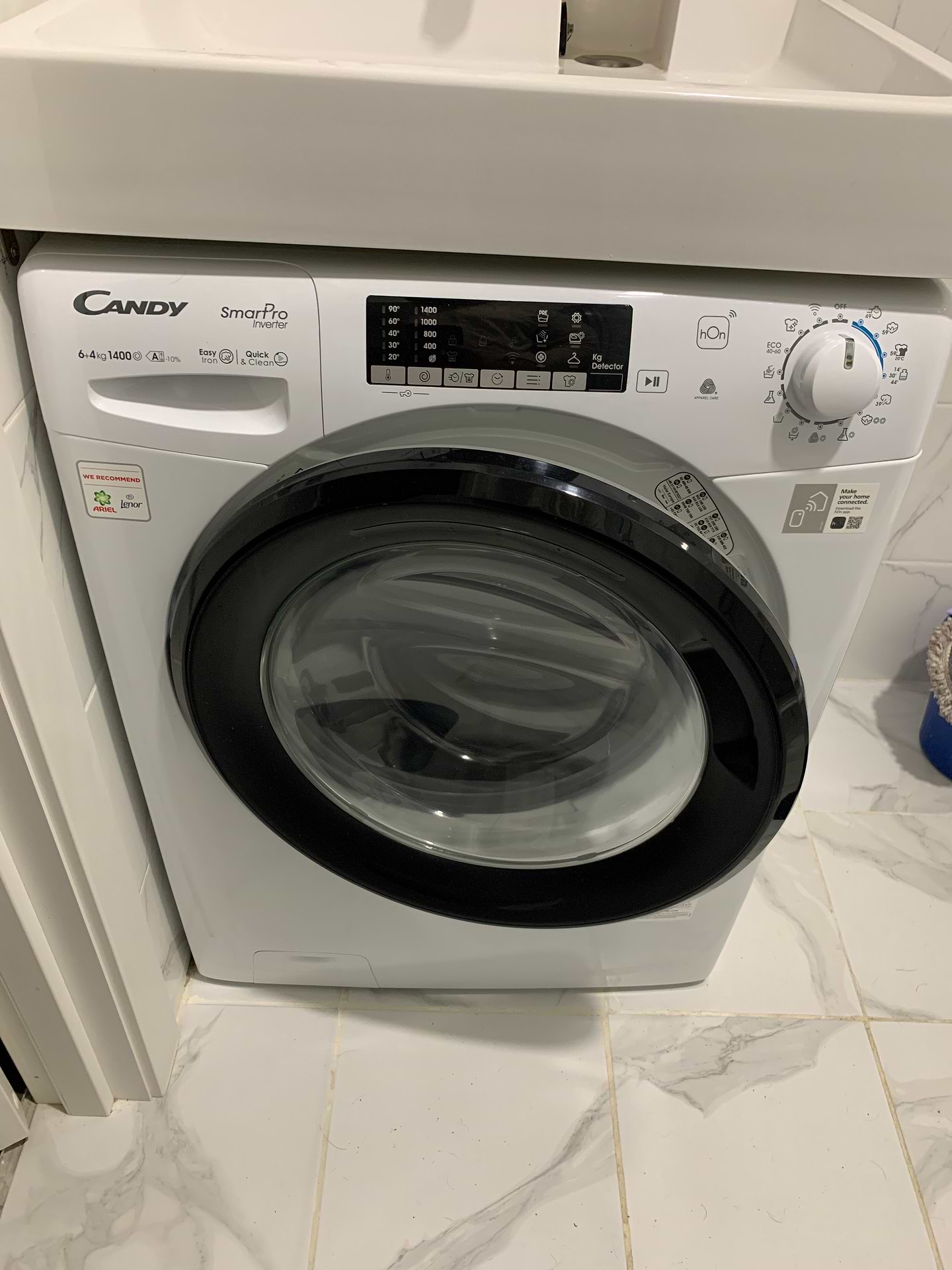 hOn – это мобильное приложение, которое помогает контролировать все параметры стирки и сушки. Теперь у вас есть возможность выбирать правильную программу и управлять прибором, а также постоянный доступ к советам по уходу за тканью и защите стирально-сушильной машины.