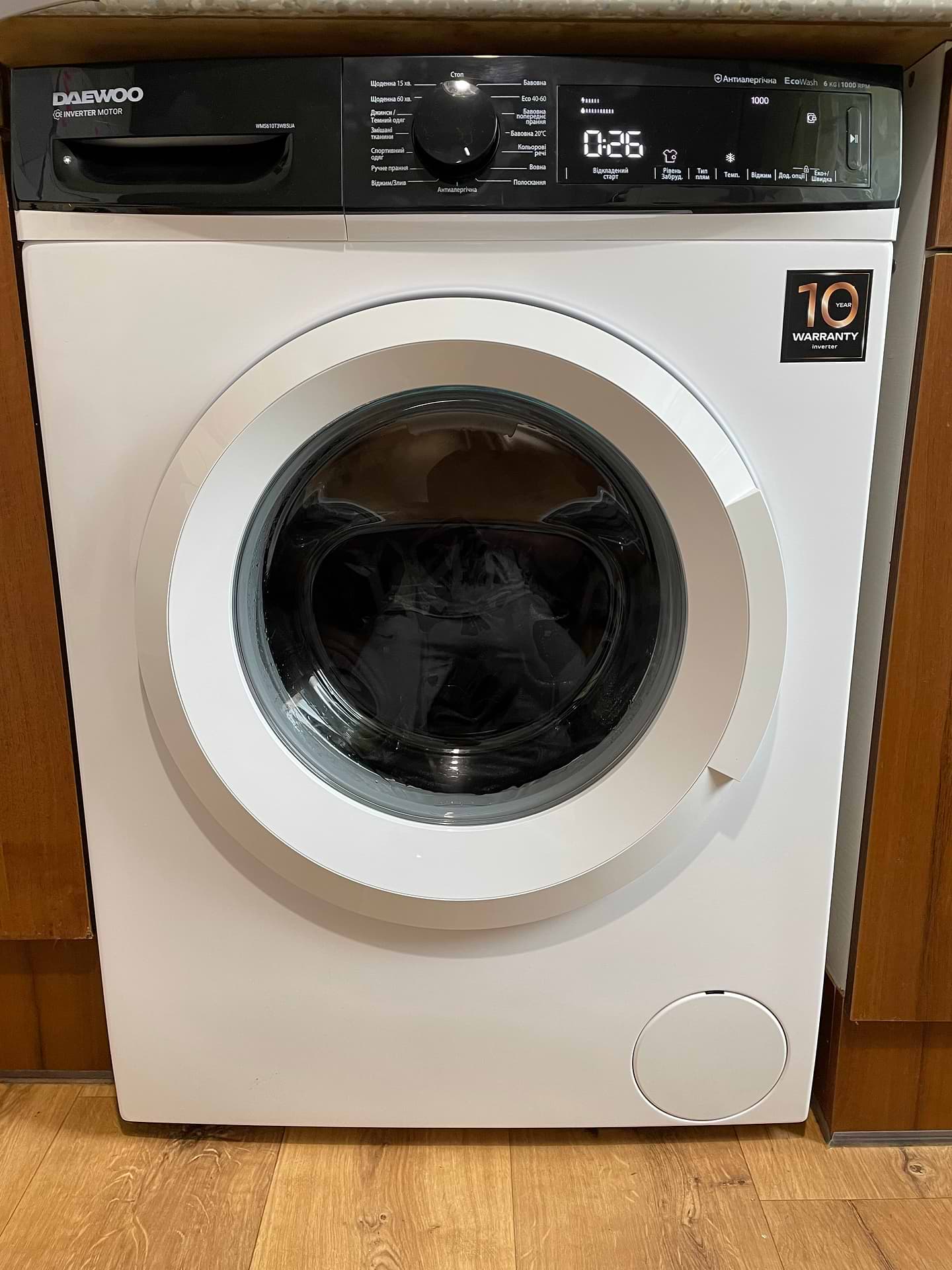 тихо працює, широкий вибір режимів прання, гарно виглядає